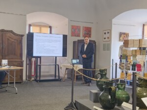 Dr. Rácz Béla, a Történelem- és Társadalomtudományi Tanszék docense részletesen beszélt arról az általa vezetett közös kutatási projektről, amely 2025-ben vette kezdetét a két intézmény részvételével, és amely Lehoczky Tivadar régészeti naplóinak digitalizálásáról, az elsődleges forrásanyag feldolgozásáról szól. A kutatási projekt vezetője az eddigi eredményekről beszélve kiemelte a többkötetes régészeti naplók feldolgozásában rejlő kihívásokat, a feljegyzések, rajzok és leltári jelölések megfejtésének specifikumait, a múzeumi tárgyak azonosítására tett intézkedések eredményeit. Rácz Béla kiemelte, hogy a forrásanyag feldolgozása szakaszosan, 2029-ig van beütemezve, és egyúttal köszönetet mondott minden kollégának és hallgatónak, akik részt vesznek ebben a munkában.