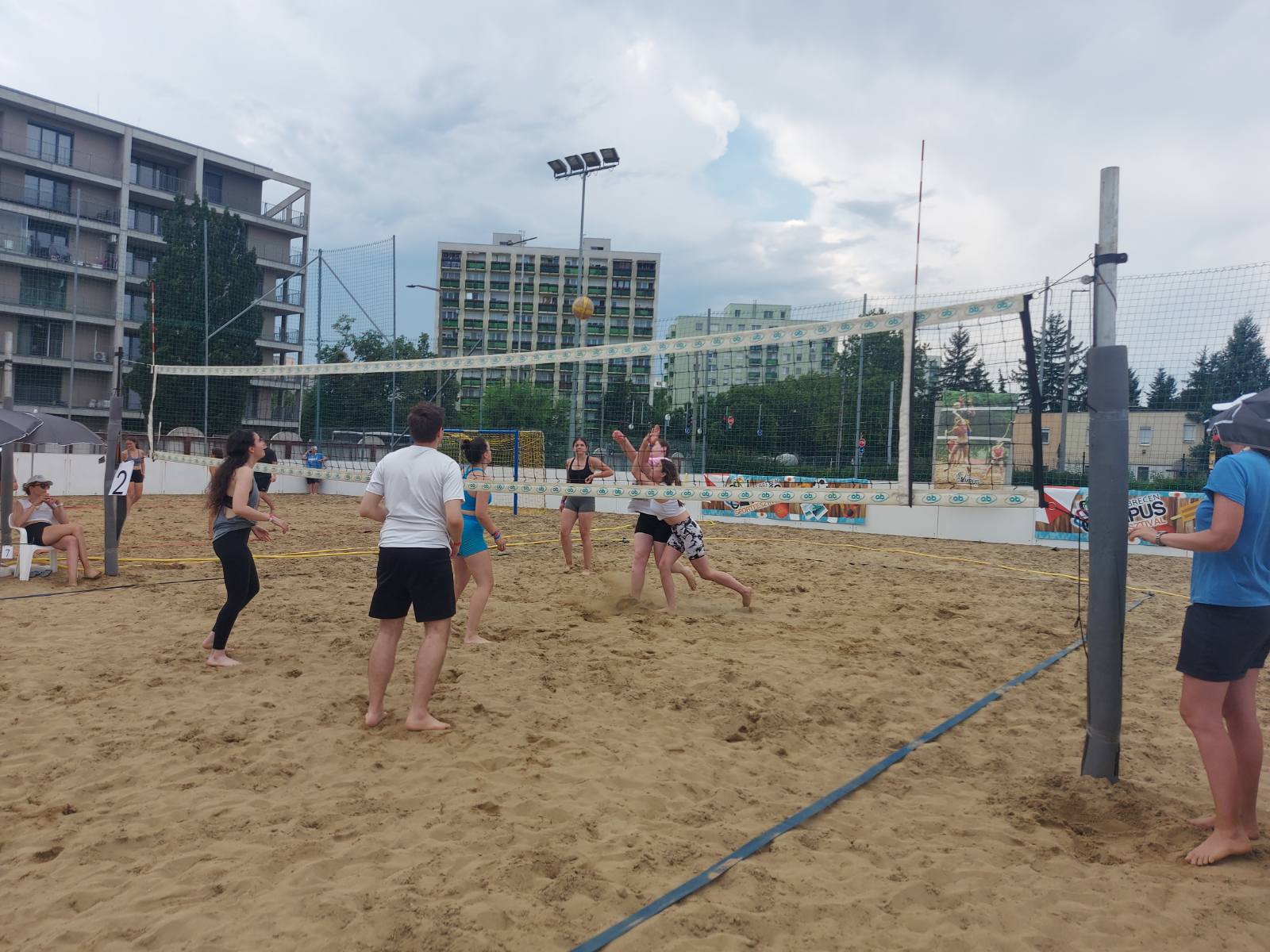 Mivel nem volt lehetőség vegyes csapatok indítására, női hallgatóink álltak helyt a strandröplabda-mérkőzéseken. A 104 nevezett csapat között az Arany-Oskák néven induló együttesünk sikeresen teljesítette a csoportkört: két játszmában arattak győzelmet (15-9 és 15-11), és ezzel bejutottak a legjobb 18 közé. A következő fordulóban azonban alulmaradtak. A másik csapatunk, a Nyugat Gyöngyei szintén szépen kezdett: szoros játszmában 15-13-ra nyerték első meccsüket, ám a második találkozón – a kiélezett játék és a pontváltások ellenére – 11-15-ös vereséggel búcsúztak a további küzdelmektől.