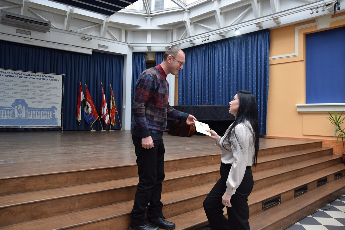 Ezt követően az alapítvány azokat a pedagógusokat díjazta, akik diákja az elmúlt év során első helyezést ért el a Kárpátaljai Magyar Pedagógusszövetség által rendezett tanulmányi versenyeken.