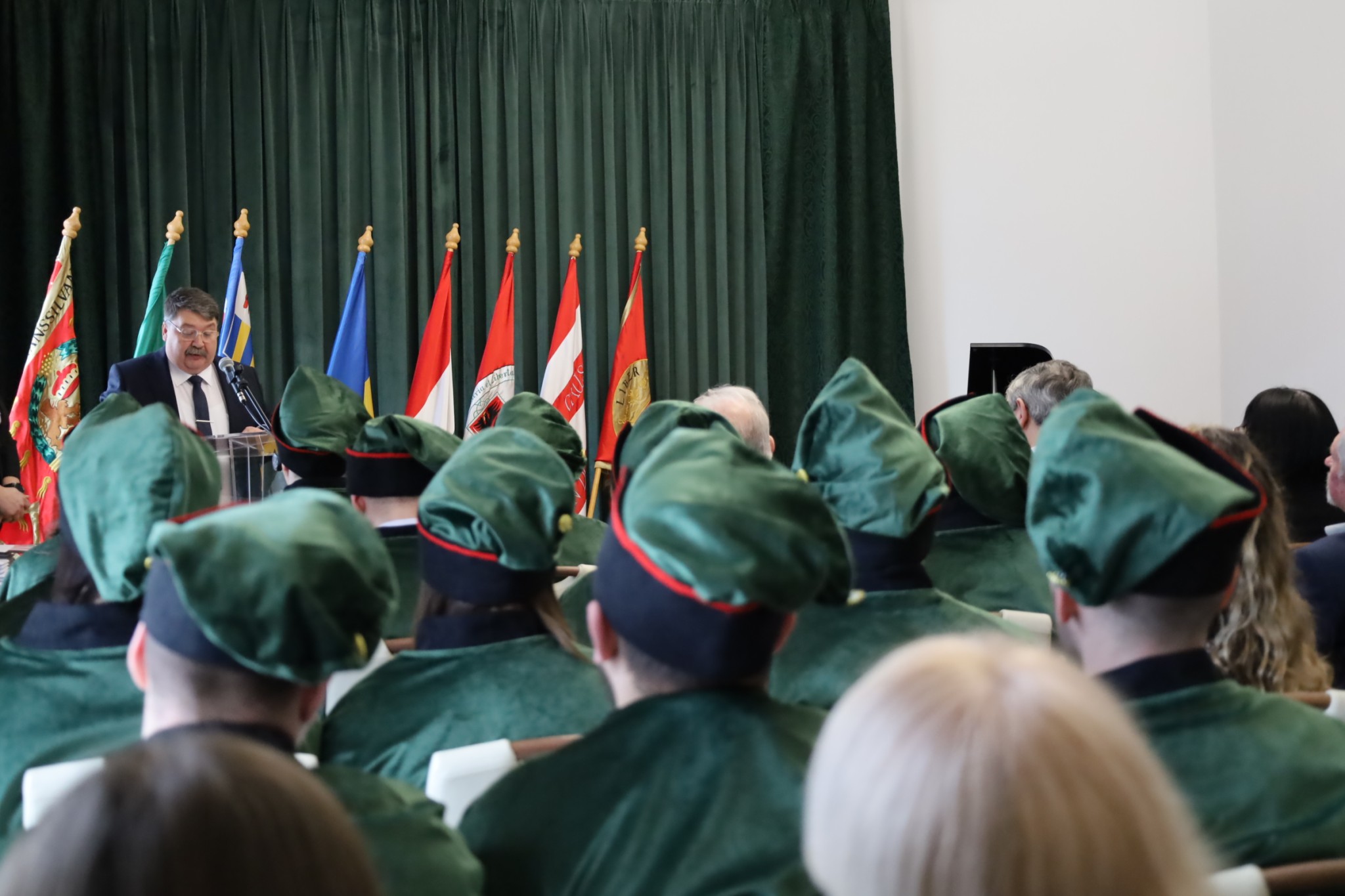 Bacskai József, az Ungvári Főkonzulátus főkonzulja köszönetet fejezett ki mindazoknak, akik kitartottak a szülőföldjükön, tanítottak, tanultak és építették a jövőt az elmúlt időszakban. Beszédében kiemelte, hogy a mai diplomaosztó ünnepség jelképes jelentőségű, mivel a világunk tele van globális kihívásokkal és feszültségekkel – ez rávilágít arra, hogy a szülőföldön való kitartás ma sokkal fontosabb, mint korábban volt. Végezetül, további sikereket és boldogságot kívánt a végzős hallgatóknak. Emellett biztosította őket, hogy mindig számíthatnak Magyarország támogatására.