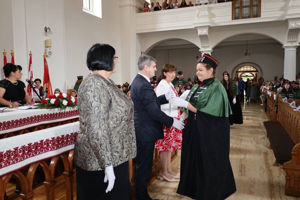 A diplomák általános ismertetése után a végzősök Orosz Ildikótól, a Rákóczi-főiskola elnökétől és Csernicskó Istvántól vehették át megérdemelt okleveleiket, majd felcsendült a diákhimnusz.