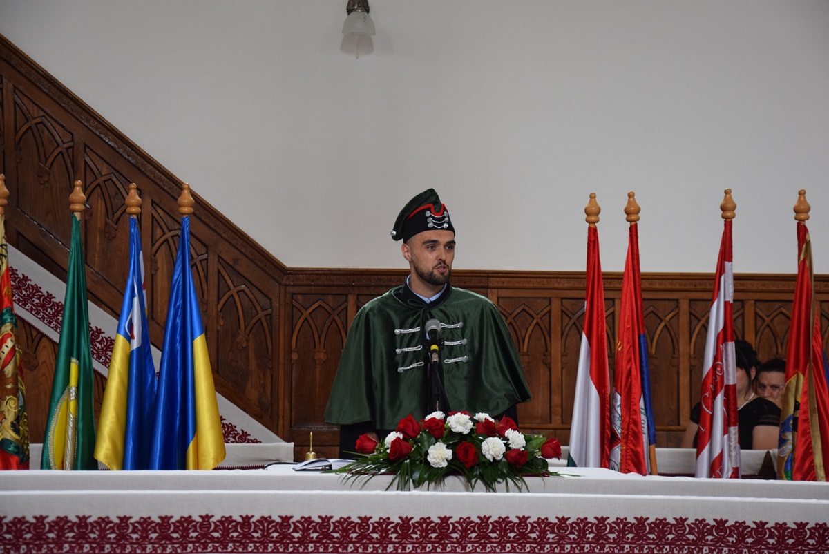 Ezt követően a végzős hallgatók nevében Temető Ádám matematika szakos, nappali tagozatos végzős hallgató mondott köszönetet. Ezután a diákok fogadalomtétele következett, melyet Orosz Melánia történelem szakos nappali tagozatos végzős hallgató olvasott elő.