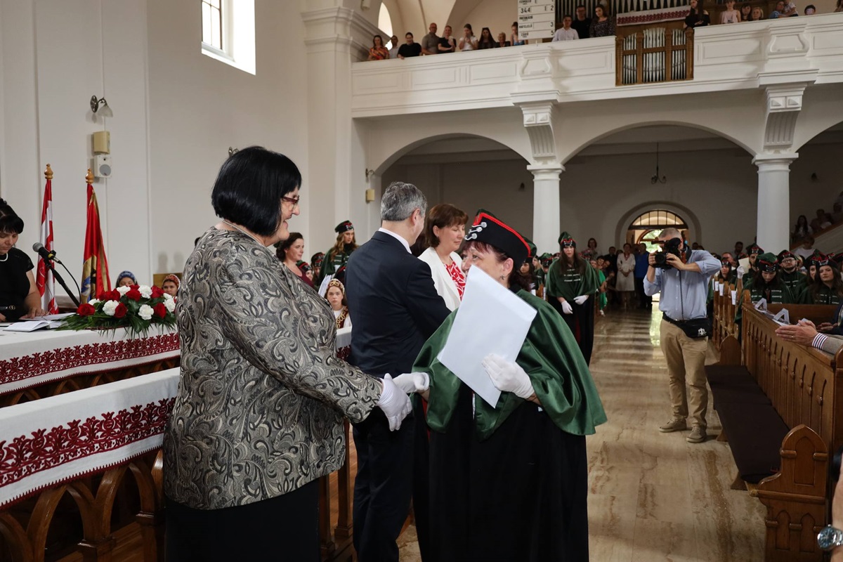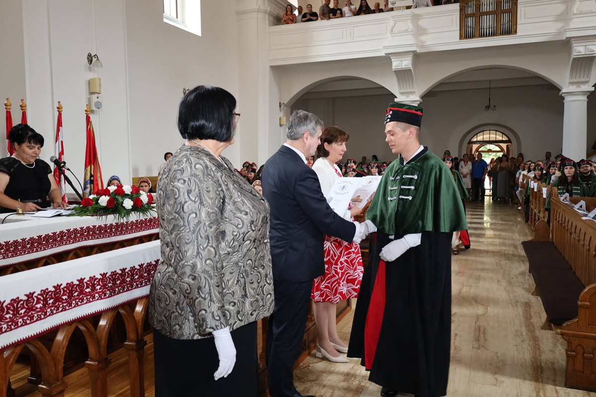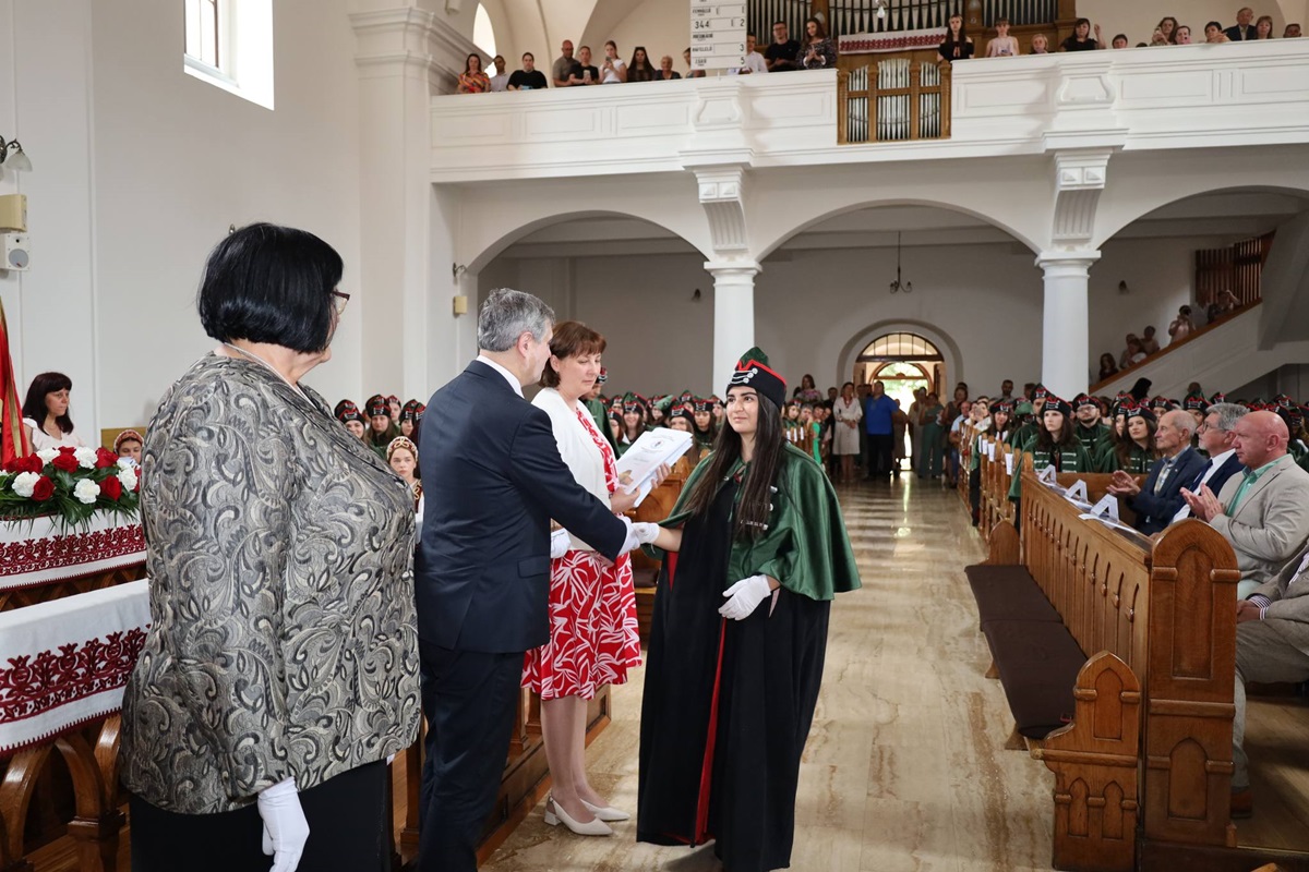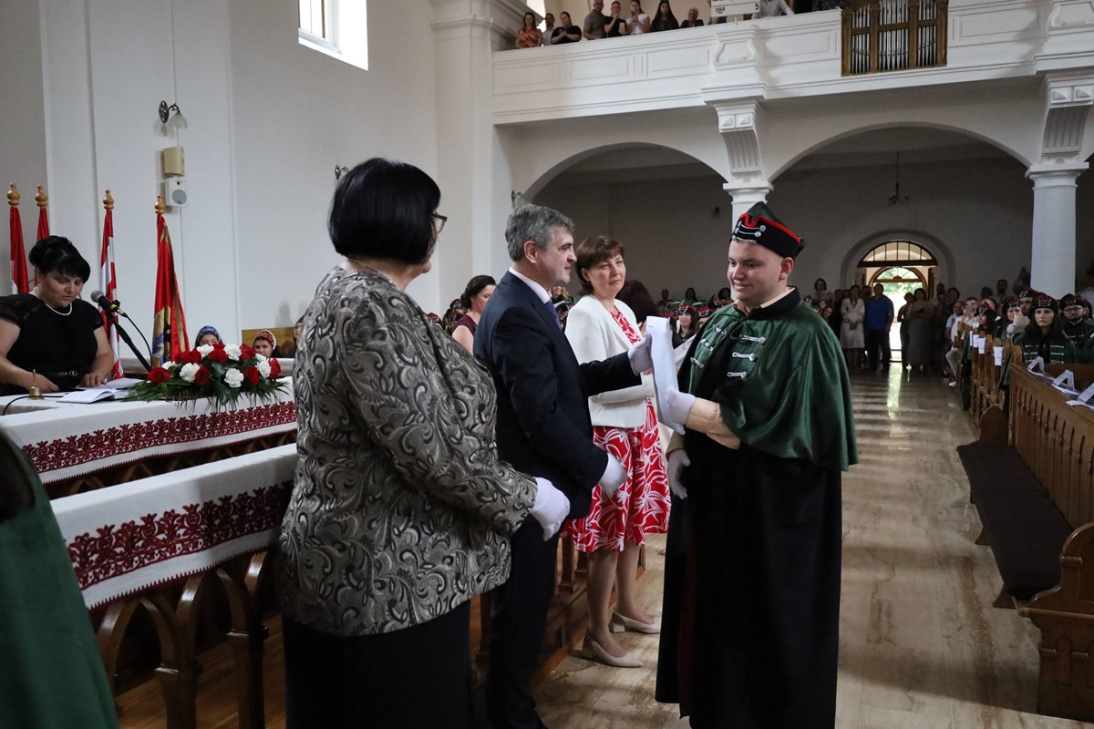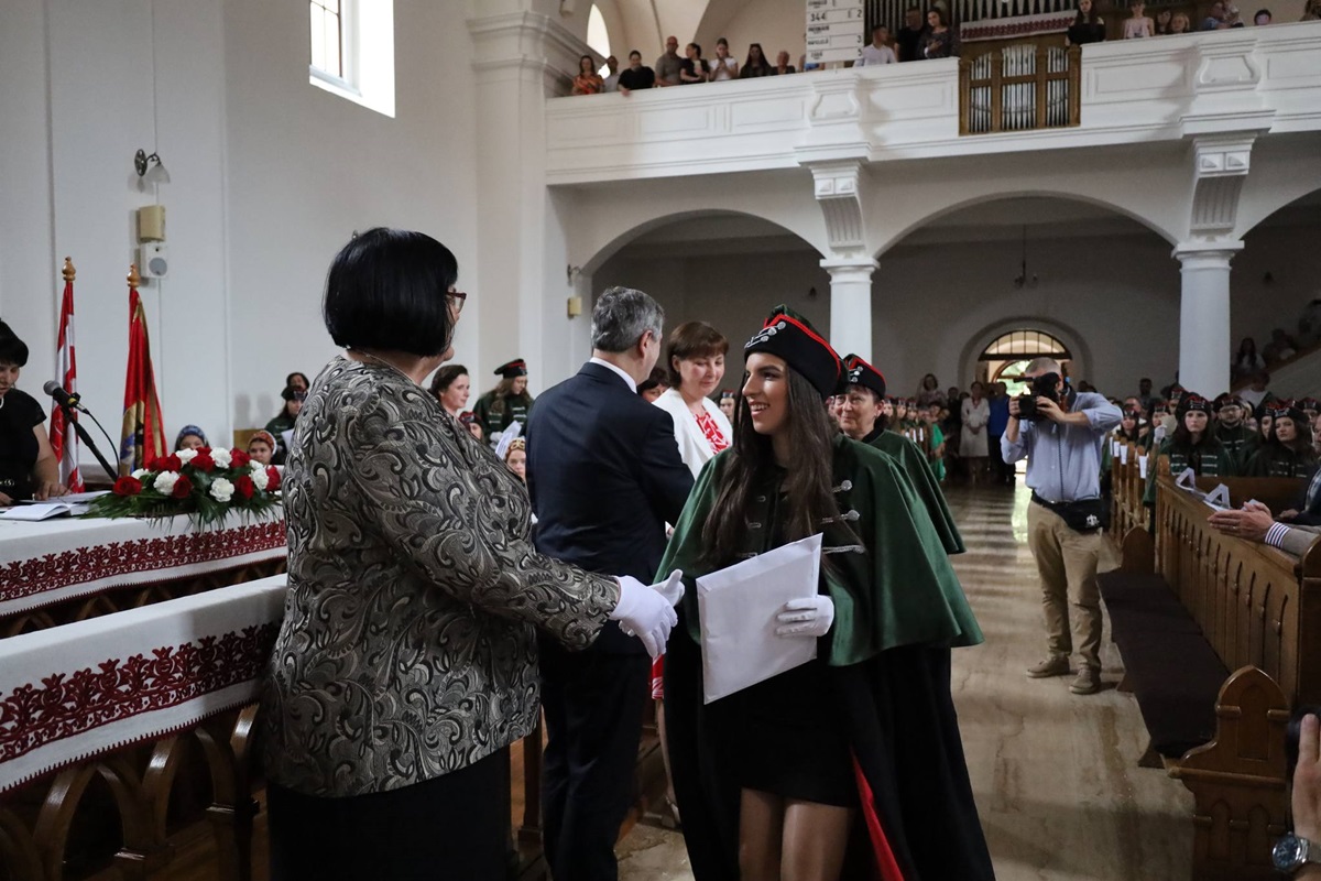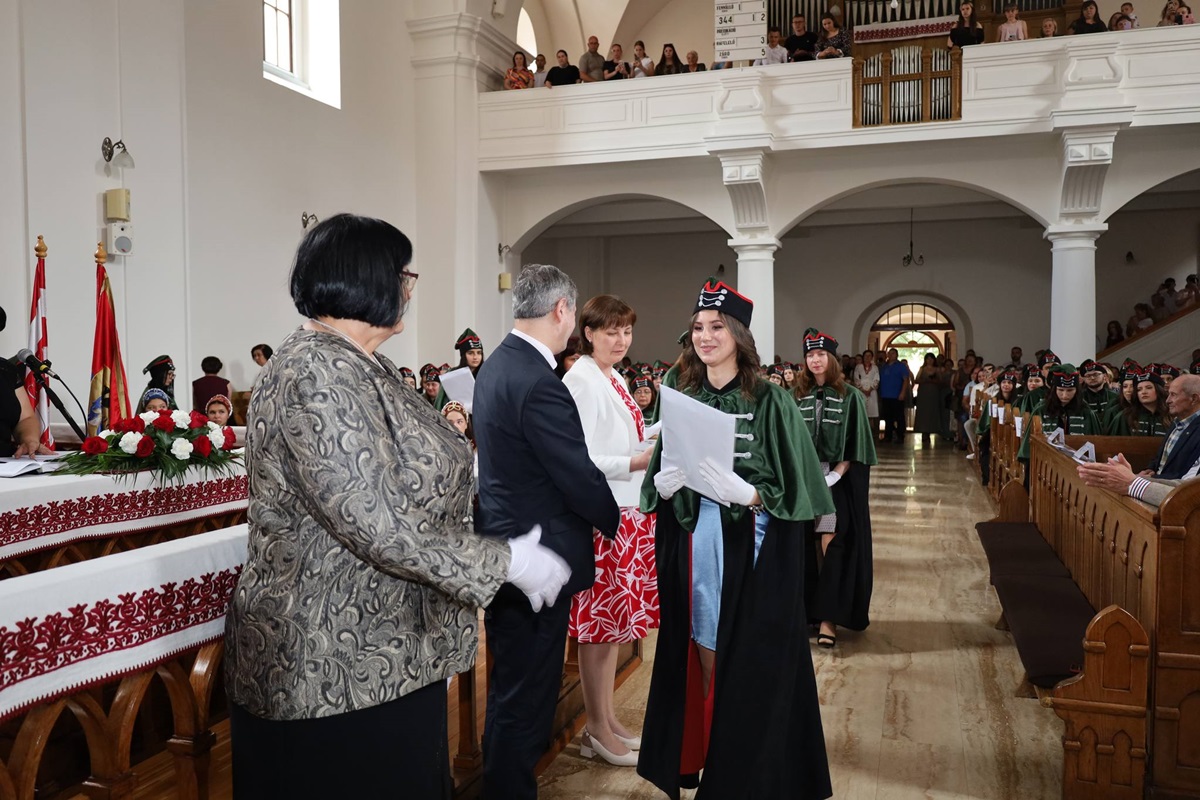 A diplomák általános ismertetése után a végzősök Orosz Ildikótól, a Rákóczi-főiskola elnökétől és Csernicskó Istvántól vehették át megérdemelt okleveleiket, majd felcsendült a diákhimnusz.