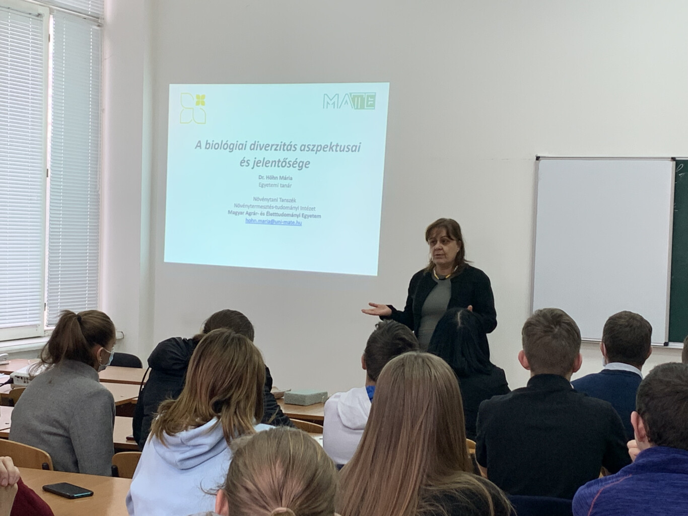 A kutató A növény és állat filogenezisének alapjai tantárgy keretében tartott előadást „A biológiai diverzitás aszpektusai és jelentősége” címmel, melynek során a hallgatóság megismerkedhetett a biológiai sokféleség szempontjából kiemelt területekkel és azok kialakulásának okaival.