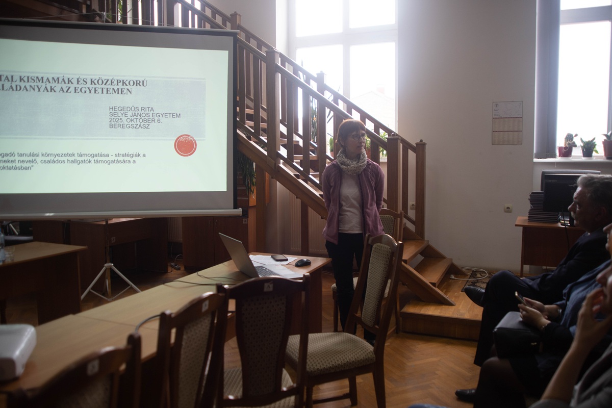 Hegedűs Rita, a Selye János Egyetem docense a fiatal kismamák és a középkorú családanyák helyzetét vizsgálta, megállapítva, hogy a családos hallgatók főbb problémái közé tartozik, hogy ki vigyáz a gyermekre, míg ők tanórán vannak, vagy hogyan tudják megoldani egyetemi kimaradásukat akkor, ha a gyermek beteg.