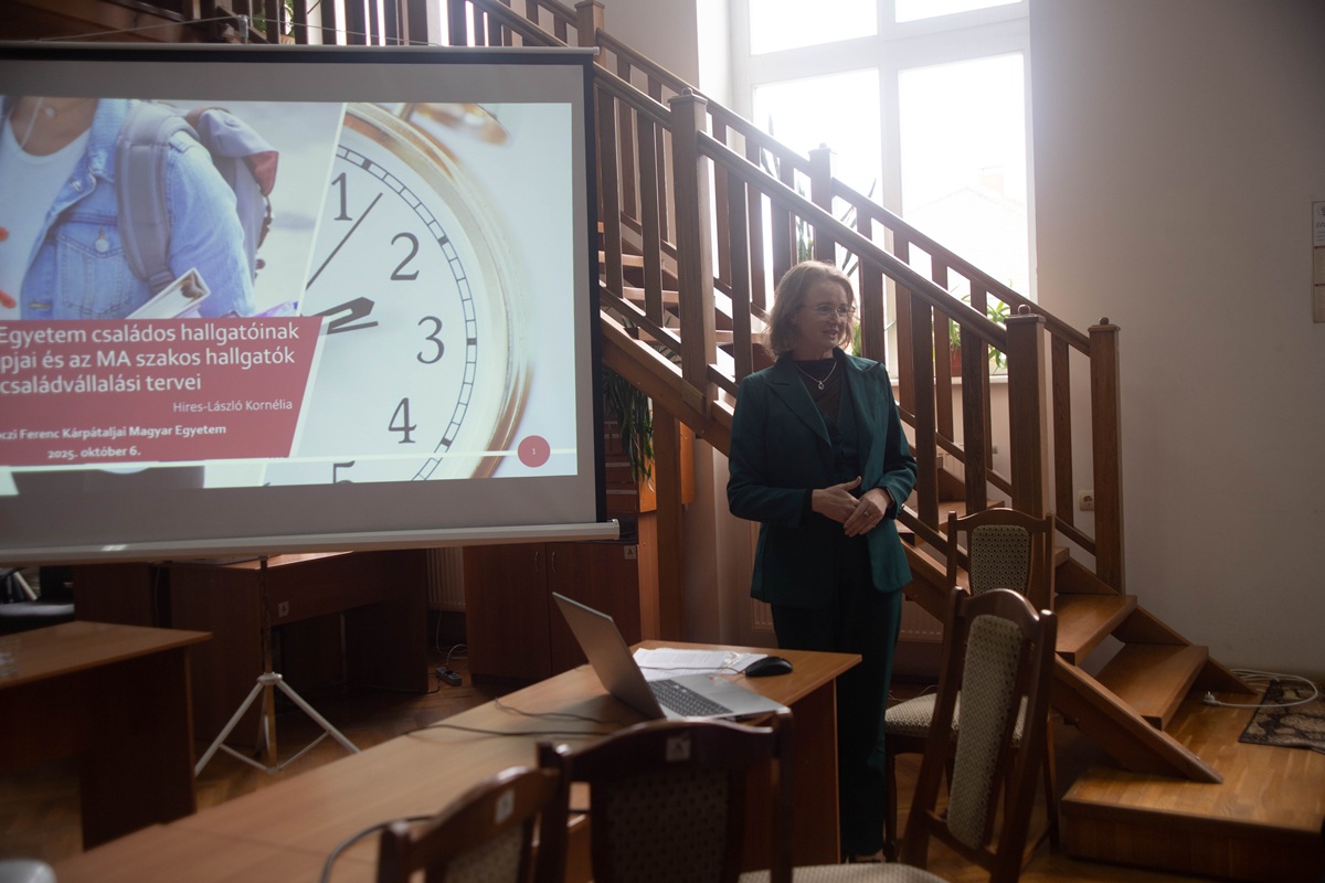Hires-László Kornélia, a Rákóczi Egyetem Hodinka Antal Nyelvészeti Kutatóközpontjának vezetője a mesterképzésben részt vevő családos hallgatókat kérdezte meg. Kiemelte, hogy Kárpátalján konzervatívabb, családi értékeket megtartó nemzedék él, a fiatal anyáknak pedig nem kell választaniuk az anyaság és a tanulás között, hisz a szüleik segítségére mindig számíthatnak. Végezetül azt a következtetést vonta le, hogy az orosz–ukrán háború a hagyományos családi modelleket felborította, a családok szétszakadtak, ami megnehezíti mindennapjainkat.