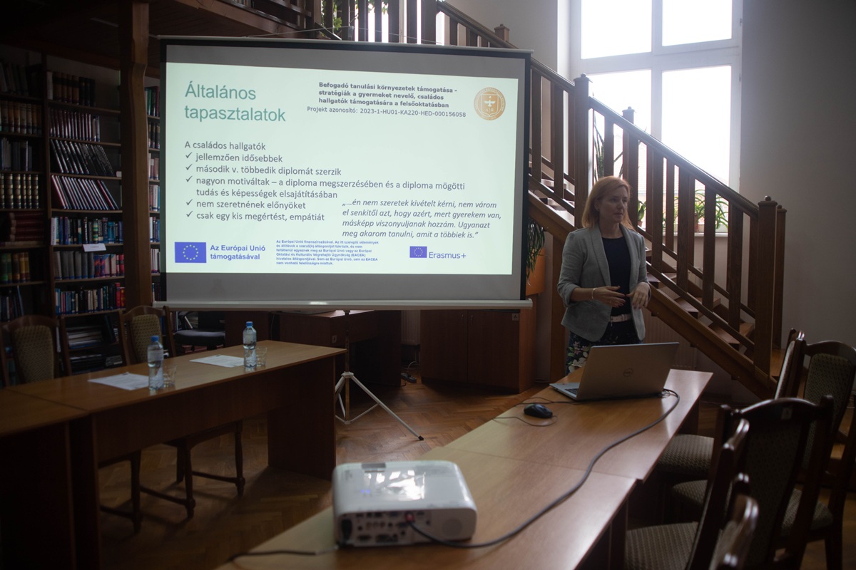 Őt követte Sztáray Kézdy Éva és Drjenovszky Zsófia, a Károli Gáspár Református Egyetem két docense, akik az intézményükben végzett kutatást ismertették. Kiemelték, hogy fókuszcsoportos beszélgetések révén mérték fel a helyzetet, ismerték meg a családos hallgatók igényeit.