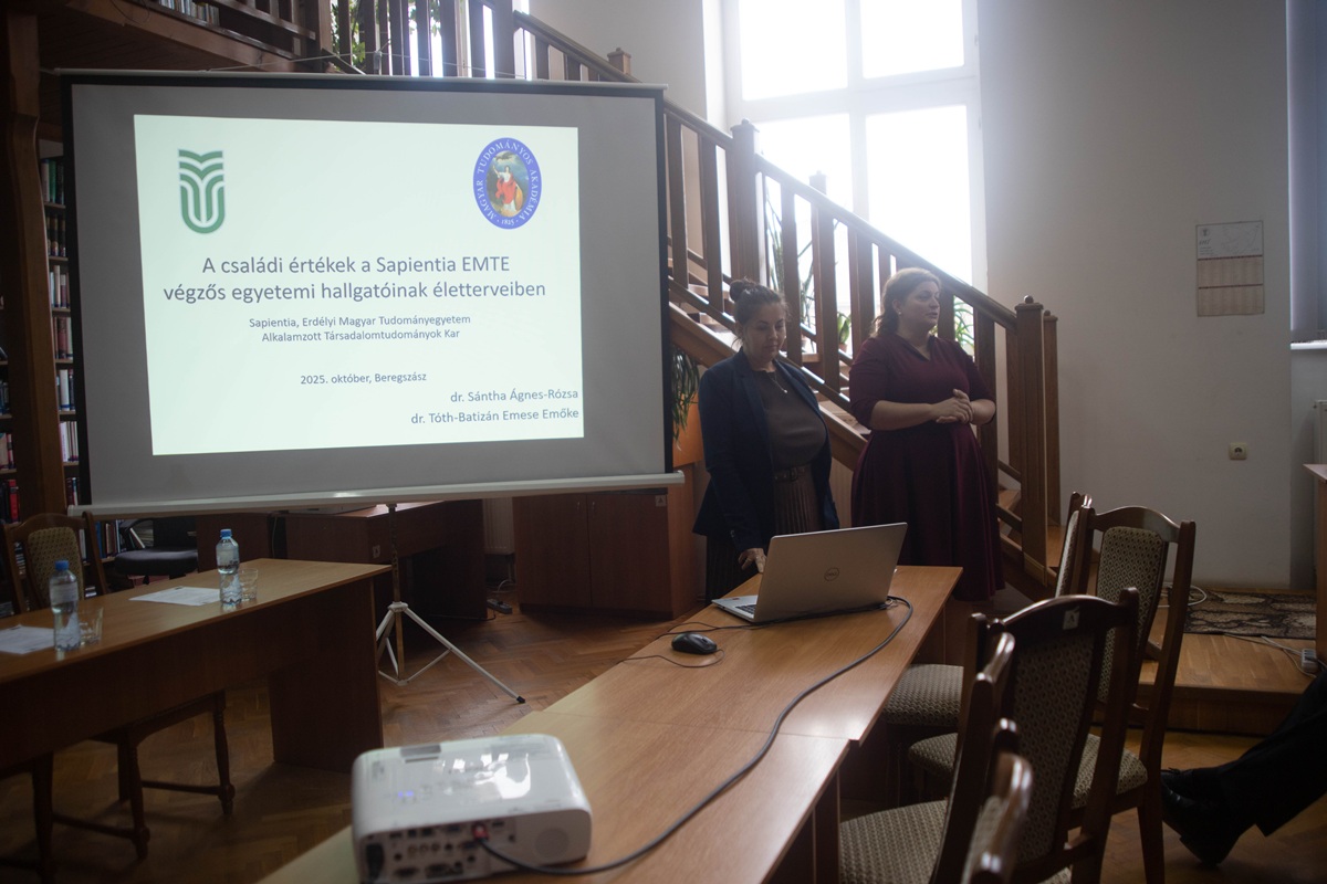 Sántha Ágnes-Rózsa docens és dr. Tóth-Batizán Emese-Emőke adjunktus a Sapientia Erdélyi Magyar Tudományegyetemről az ő kutatási eredményeiket mutatták be, kiemelve, hogy intézményükben nincs levelező tagozatos képzés, hallgatóik pedig a fiatalabb korosztályba tartoznak, de a család szerepe erősen megjelenik, jövőbeli terveikben a stabil párkapcsolat, a házasság és a három vagy több gyermek lehetősége vetődik fel.