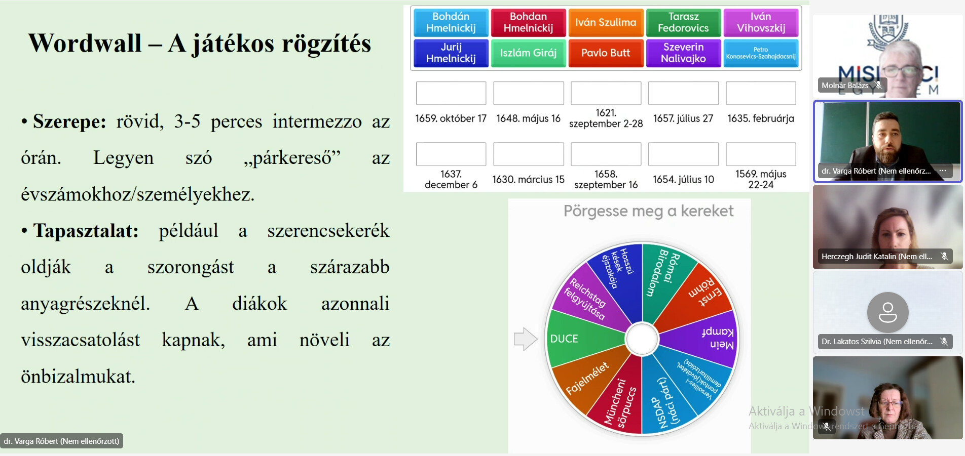 A konferencia Digitális pedagógia és mesterséges intelligencia az oktatásban elnevezésű szekciójában tanszékünk oktatói két különböző, de egymást jól kiegészítő módszertani megközelítést mutattak be. Szamborovszkyné Nagy Ibolya előadásában a lapbook módszerében rejlő lehetőségeket vázolta fel, különös tekintettel annak a középiskolai történelemoktatásban és a pedagógusképzésben betöltött szerepére. Prezentációja rávilágított arra, hogy a kreatív alkotómunka miként segítheti a tananyag elmélyítését. Varga Róbert előadásában az élményalapú történelemtanítás gyakorlati oldalát járta körül, bemutatva azokat a digitális platformokat és tapasztalatokat, amelyekkel a modern technológia segítségével tehető motiválóbbá és szemléletesebbé a múlt feldolgozása a diákok számára.