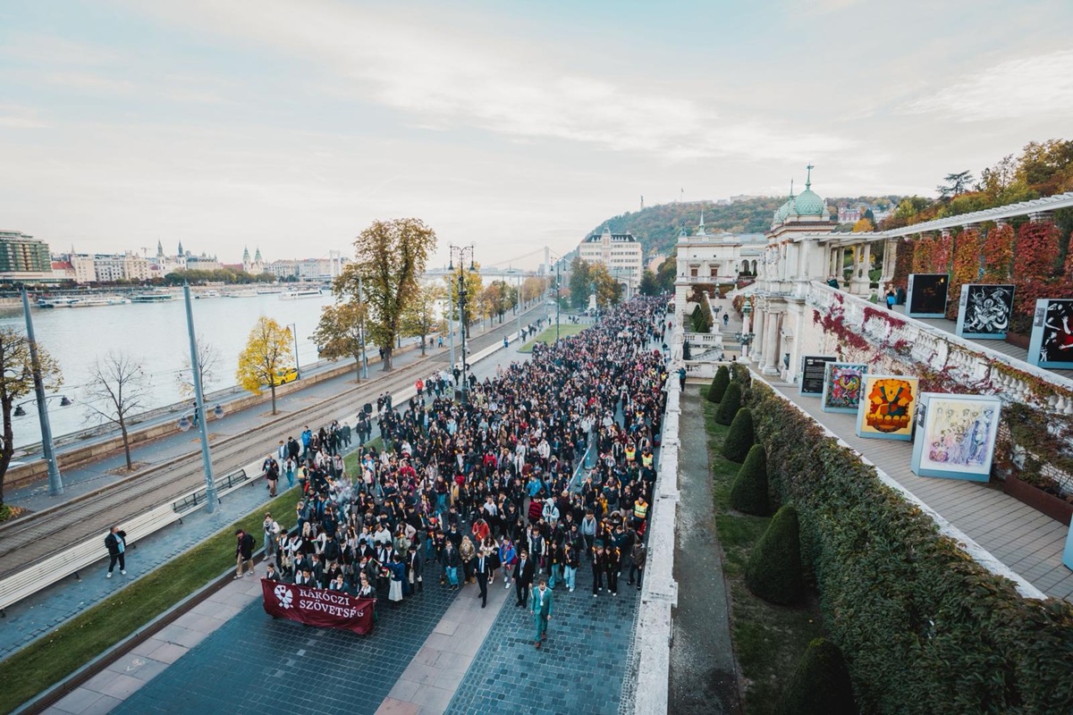 Az ünnepség a forradalom bölcsőjének számító Budapesti Műszaki és Gazdaságtudományi Egyetem aulájában kezdődött, ahol ünnepi beszédek hangzottak el, majd fáklyás menettel folytatódott a Műegyetemtől a Bem József térre. A Bem-szobornál a Rákóczi Egyetem nevében Orosz Ildikó elnök helyezte el az emlékezés koszorúit az 1956-os hősök tiszteletére.