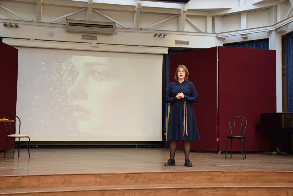 Az Ukrán Tanszéki Csoport 1-5. éves hallgatóinak előadásában a kortárs írónő számos verse megelevenedett ukrán, magyar és angol nyelven. Többek között a Доля, І все на світі треба пережити, Спини мене, Море, Ліс verseket hallhattuk, valamint a diákok közös előadásában a Вечірнє сонце, дякую за день megzenésített művet.