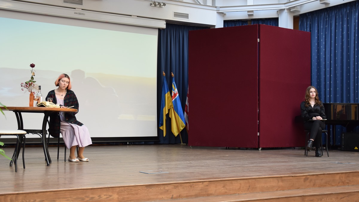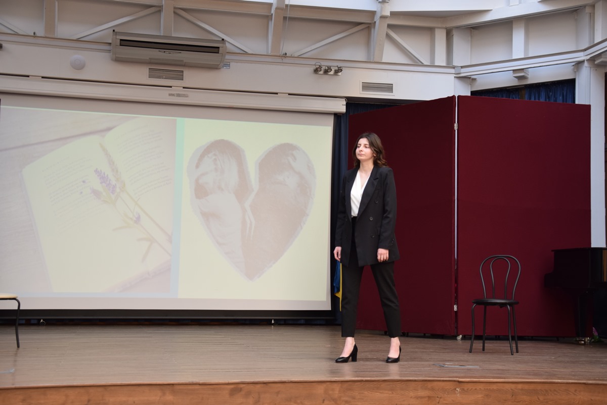 Az Ukrán Tanszéki Csoport 1-5. éves hallgatóinak előadásában a kortárs írónő számos verse megelevenedett ukrán, magyar és angol nyelven. Többek között a Доля, І все на світі треба пережити, Спини мене, Море, Ліс verseket hallhattuk, valamint a diákok közös előadásában a Вечірнє сонце, дякую за день megzenésített művet.