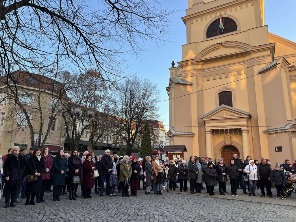 Az adventi koszorú első gyertyáját Molnár János beregszászi esperes-plébános, püspöki helynök és Babják Zoltán polgármester gyújtotta meg. A megható pillanatokban Roszpotnyuk Vitalina hegedűn adta elő az Ó jöjj, ó jöjj, Emmanuel című dalt.