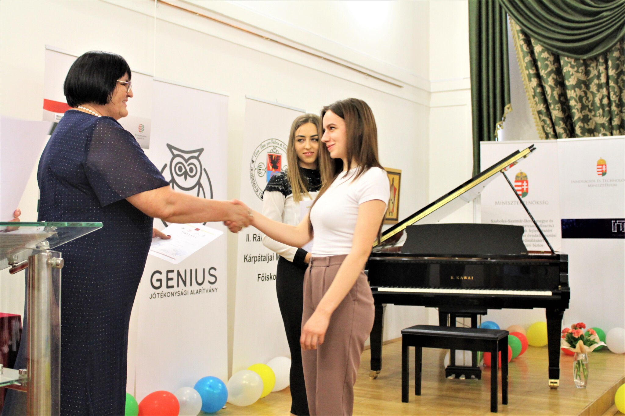 Az eszközátadóra, valamint az ösztöndíjak/különdíjak és elismerő oklevelek átadására 2022. június 4-én került sor a „GENIUS” Jótékonysági Alapítvány tanévzáró ünnepségén, a XI. Kárpátaljai Tehetségnapon. A díjakat Dr. Orosz Ildikó, a II. Rákóczi Ferenc Kárpátaljai Magyar Főiskola elnöke adta át a versenyzők számára.