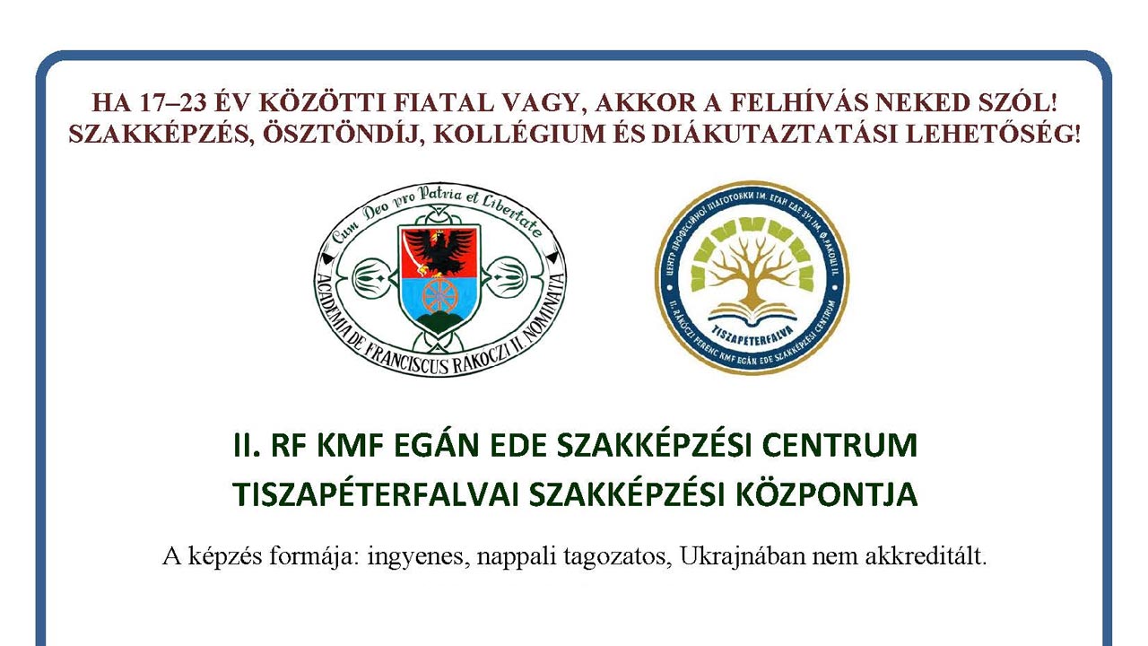 Bővebb információk: tel: +380688561561 (Pólin Lénárd, tagintézeti igazgató) e-mail: tiszapeterfalvai.szakkepzes@gmail.com