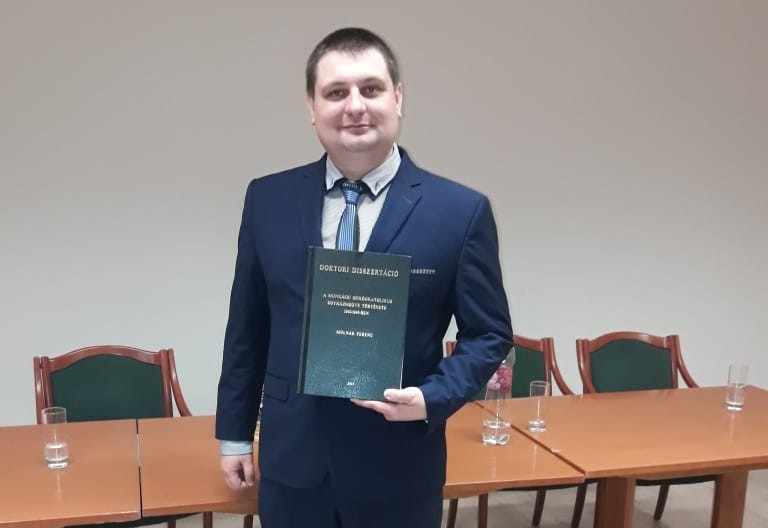 A Történelem- és Társadalomtudományi Tanszék újabb oktatója szerzett tudományos fokozatot. Molnár Ferenc kollégánk 2019. január 10-án az Eötvös Loránd Tudományegyetem Történelemtudományi Doktori Iskolájában védte meg „A Munkácsi Görögkatolikus Egyházmegye története 1848-1849-ben” értekezését. A disszetárcióban nem csupán az Ungvár központú püspökség forradalomban és szabadságharcban betöltött szerepével foglalkozott a szerző, de átfogó képet nyújtott az egyázmegye újkori történetéről. A dolgozat témavezetője Erdődy Gábor volt, opponensei pedig Hermann Róbert és Csorba László. A doktori bizottság summa cum laude minősítésre értékelte Molnár Ferenc hiánypótló munkáját.