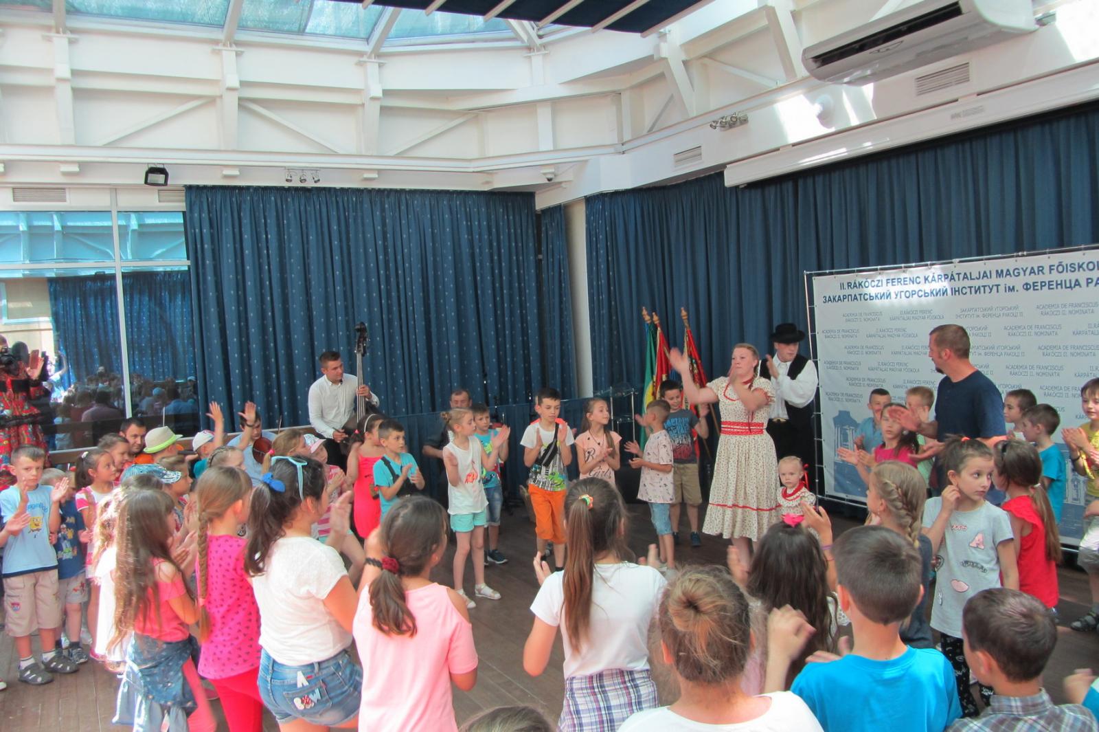 A verseken, mesén, mutatványokon túl a zene sem maradhatott ki a műsorból. Fábián Jázmin, a Kárpátaljai Népi Zenede növendéke rábaközi gyermekdalokkal lépett színpadra, míg az őt kísérő és felkészítő Kokas Banda tagjai nagydobronyi táncot mutattak be.