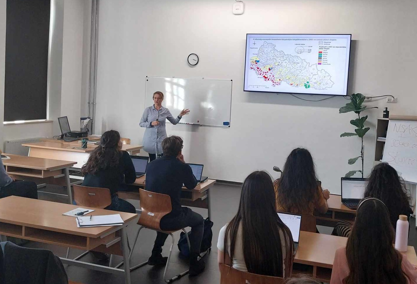 Másnap, október 9-én ugyanebben a témában a Pázmány Péter Katolikus Egyetem politológus hallgatóinak. Az oktató és kutató előadásban bemutatta azokat a fontosabb szociológiai kutatások eredményeit, amelyek a hétköznapi jelenségek bemutatása kapcsán lényegesek lehetnek, hogy kicsit közelebbről megismerjék a kárpátaljai magyarság életét, illetve azokat a fontosabb változásokat, amelyeket a háború kitörése után szervezett kutatások eredményeiből láthatunk. Továbbá az empirikus beszámoló mellett egy összefoglaló elemzéssel kiértékelte azokat a törvénykezéseket, melyek a kisebbségi léttel kapcsolatosan lényegessé váltak az elmúlt időszakban. Előadását személyes tapasztalataival, élettörténetek elmesélésével egészítette ki. Mindkét előadást követően egy kötetlen beszélgetés indult el, ahol a hallgatók számos érdekes kérdést tettek fel Ukrajnával, a kárpátaljai magyar kisebbség élethelyzetével kapcsolatosan.