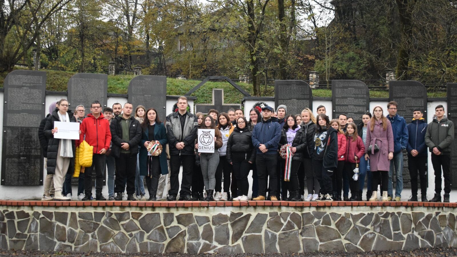 A „GENIUS” Jótékonysági Alapítvány „Gyökerek és szárnyak – a kárpátaljai fiatalok perspektívái” címmel a szülőföldön maradást népszerűsítő programokat szervezett a Kulturális és Innovációs Minisztérium támogatásával annak érdekében, hogy erősítse a kárpátaljai fiatalok nemzeti identitását és a hazaszeretetüket. A projekt részeként kárpátaljai honismereti szakmai tanulmányutak valósultak meg, melynek első állomása 2023. október 23-án az 1956-os forradalom kárpátaljai emlékhelyeinél tette tiszteletét Beregszászban és Ungváron. A tanulmányúton szakmai előadást tartott Dr. Szakolczai Attila, a Nemzeti Emlékezet Bizottság tudományos munkatársa, Dr. Váradi Natália, a II. Rákóczi Ferenc Kárpátaljai Magyar Főiskola Történelem és Társadalomtudományi tanszékének docense és Kurt A. Stahura, a Niagarai Egyetem professzora.