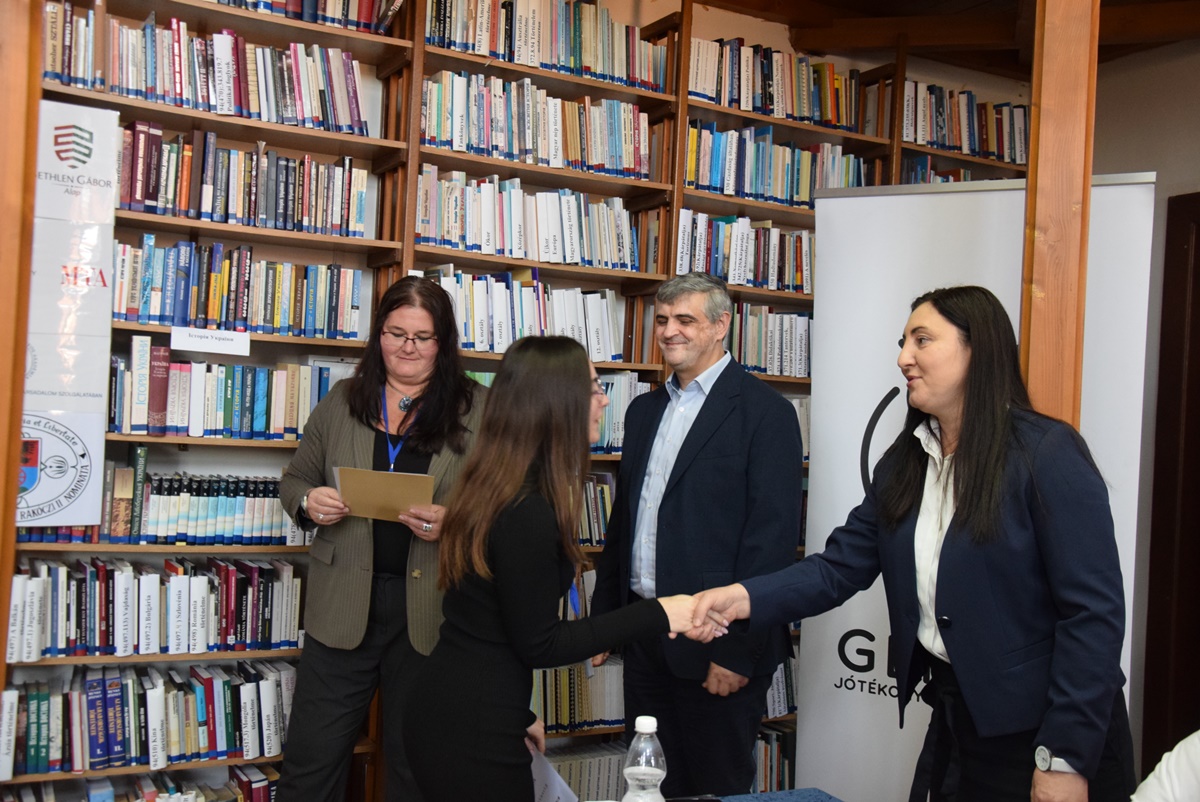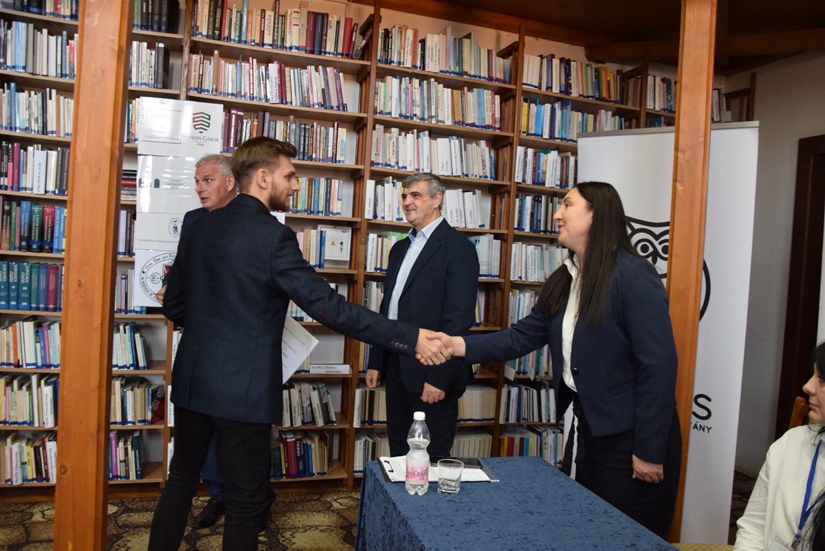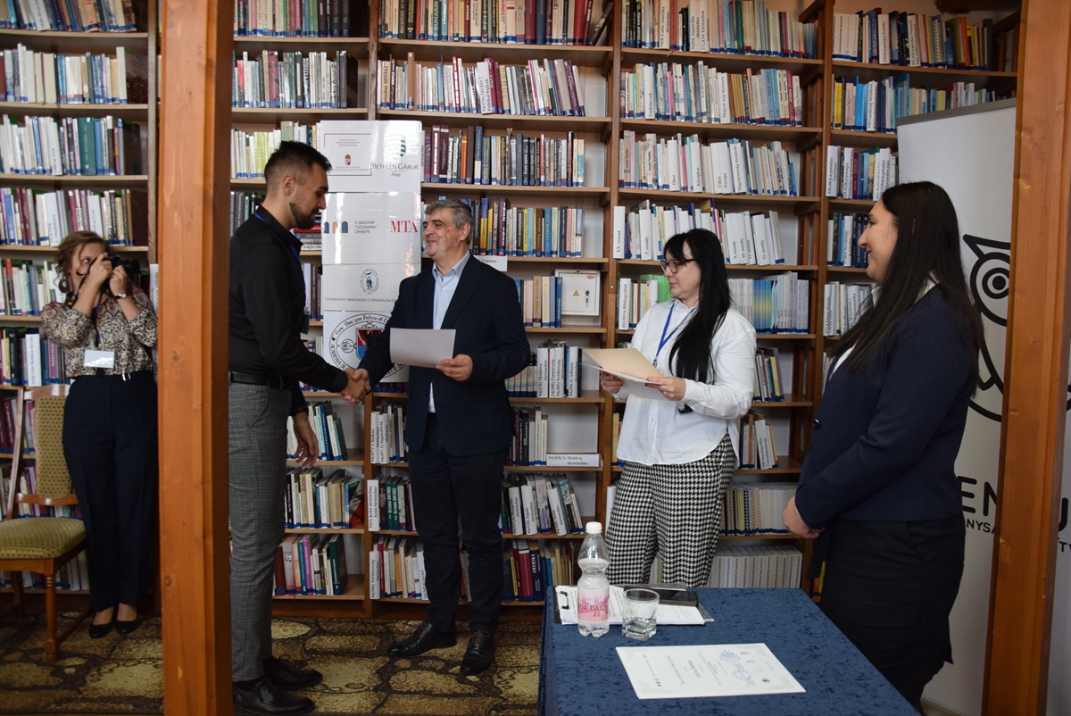 Ezt követően átadták az elismerő okleveleket, illetve három előadó – Váradi Krisztián, Sándor Zsanett és Csuha Dániel – a Kárpátaljai Magyar Akadémia Tanács (KMAT) felajánlásából egyenként 1000 hrivnya különdíjban részesült, amit Csernicskó István, főiskolánk rektora, a KMAT elnöke adott át.