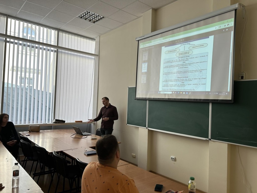 Daróci Ádám bemutatta a találkozó résztvevőinek az Útmutató az akadémiai integritáshoz (útmutató a diákok számára) c. előadását, különösen kiemelte a mesterséges intelligencia oktatásban való használatának kulcsfontosságú szempontjait, beleértve azokat a lehetőségeket és kockázatokat, amelyeket a mesterséges intelligencia jelent az akadémiai integritás szempontjából. A hallgatók megismerkedhettek az akadémiai integritás megsértése miatti felelősség különböző formáival és a tudományos szövegek plágium-ellenőrzésére szolgáló online platformokkal.