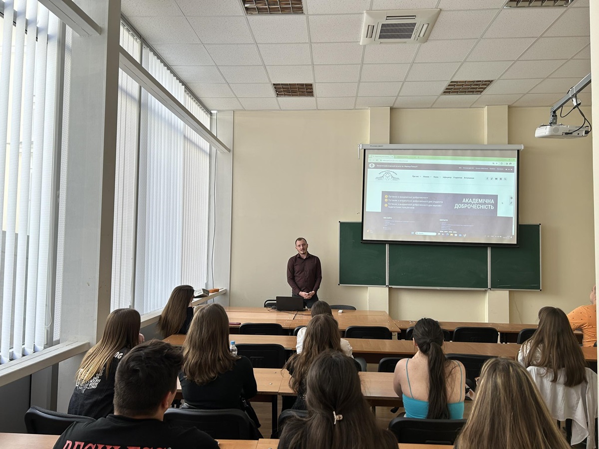 Daróci Ádám bemutatta a találkozó résztvevőinek az Útmutató az akadémiai integritáshoz (útmutató a diákok számára) c. előadását, különösen kiemelte a mesterséges intelligencia oktatásban való használatának kulcsfontosságú szempontjait, beleértve azokat a lehetőségeket és kockázatokat, amelyeket a mesterséges intelligencia jelent az akadémiai integritás szempontjából. A hallgatók megismerkedhettek az akadémiai integritás megsértése miatti felelősség különböző formáival és a tudományos szövegek plágium-ellenőrzésére szolgáló online platformokkal.