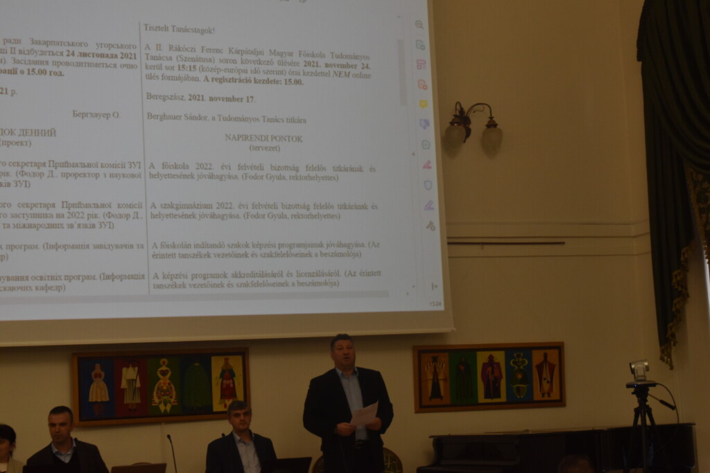 A tanácsülés napirendi pontjait Csernicskó István, az intézmény rektora ismertette a tanárokkal és munkatársakkal. A szenátus ezeket a pontokat egyöntetűen jóváhagyta.
