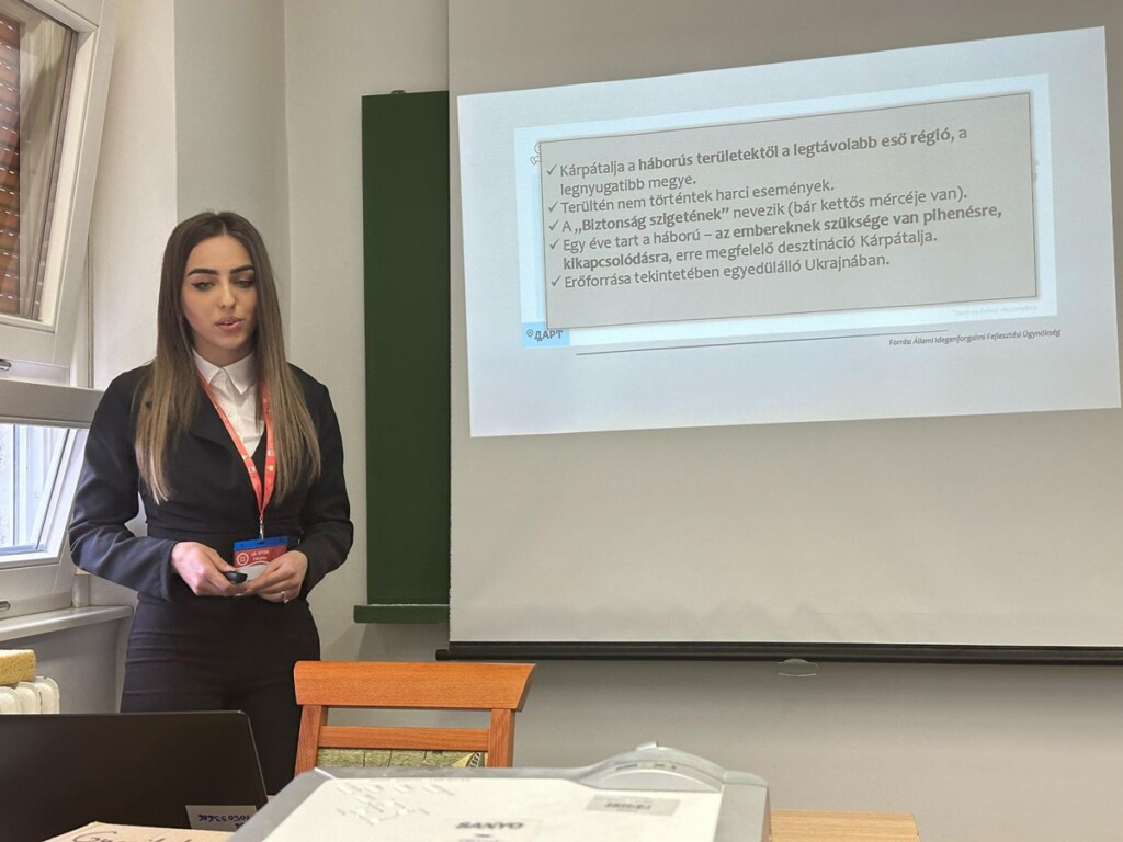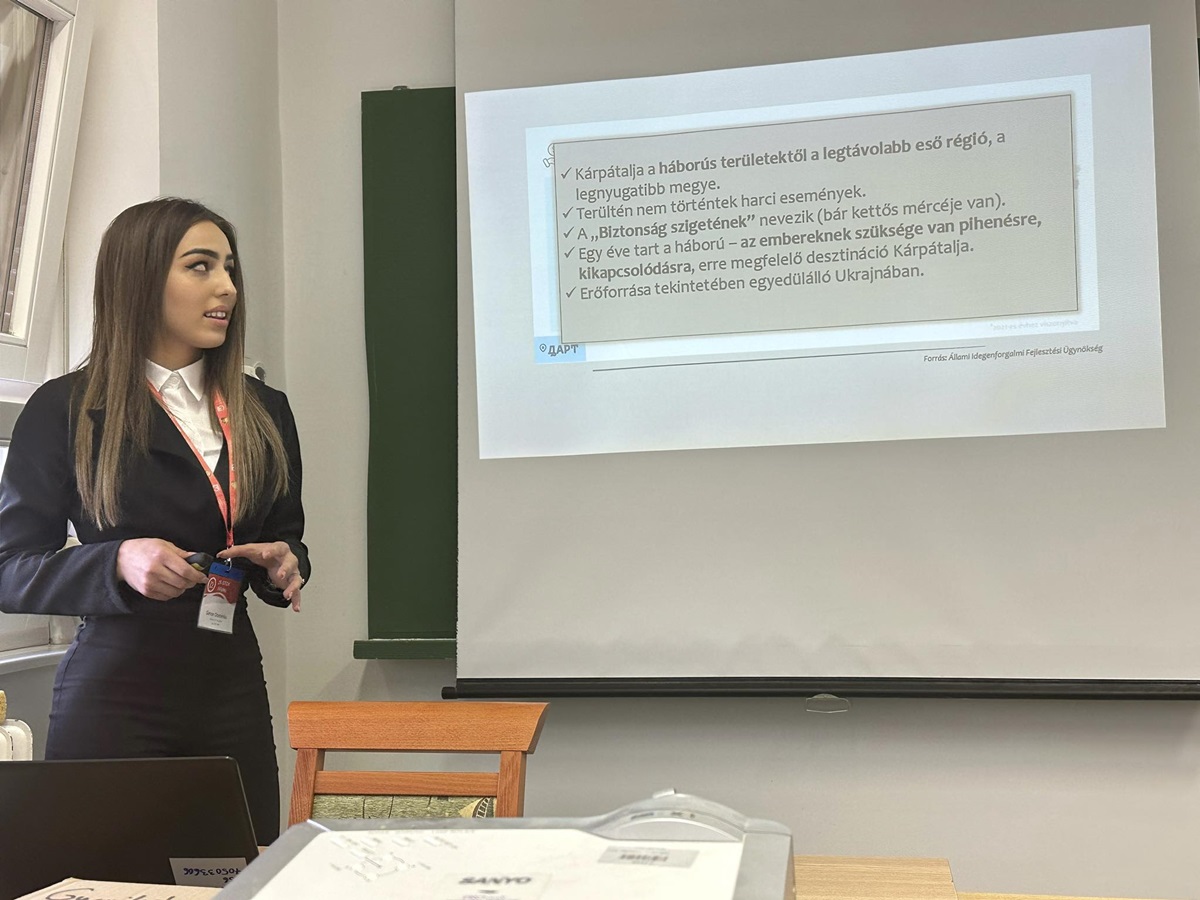 A Társadalomföldrajz tagozatban, azon belül pedig a Fenntartható terület- és településfejlesztés altagozatban mutatta be Kárpátalja turizmusfejlesztési lehetőségei című pályamunkáját Simon Dominika, témavezetője Dr. Berghauer Sándor. A népesség és a társadalom földrajzi kérdései altagozatban Tóth Lídia a Gyermekvállalási attitűdök vizsgálata a Munkácsi járás délnyugati csücskének településein című dolgozatának eredményeit ismertette, témavezetője Dr. Molnár József. A Matematika – azon belül pedig az Algebra és számelmélet – tagozatban Mozgovoj István demonstrálta munkáját a Csoportalgebrákról, melyek egységcsoportja meta-Abel, témavezetője Dr. Juhász Tibor. Mozgovoj István pályamunkája különdíjban részesült, melyhez ezúton is gratulálunk.