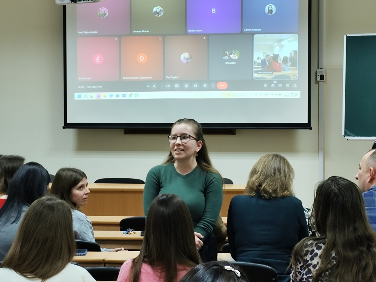 A tanszék több hallgatója dolgozik már tanulmányai mellett, hiszen a filológus szakemberekre szükség van Kárpátalján. Nevükben Kovács Szkárlett Szintia, jelenlegi másodéves MA hallgató mesélt pedagógusi munkájáról, melyet Badalóban végez.