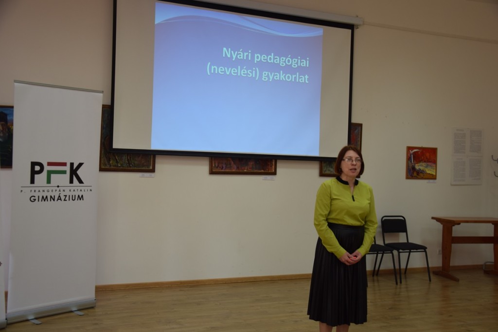 A program első napja általános tájékoztatóval kezdődött, melyet Hutterer Éva, a pedagógia tanszék pedagógiai gyakorlatokért felelős oktatója tartott. Ezt követően Jakab Andrea, a P. Frangepán Katalin Gimnázium igazgatója az intézményrendszerük bázisán megvalósuló nyári nevelési lehetőségeket vázolta, kitérve a Kárpátaljai Magyar Pedagógusszövetség (KMPSZ) által a szórványban működtetett táborokra és az azokban megvalósuló kultúraközvetítő tevékenységre is.