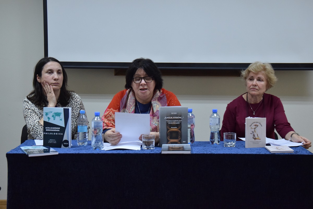 Ezt követően Kész Margit, a Filológia Tanszék Magyar Tanszéki Csoportjának docense mutatta be Gál Adél tanszéki docens „Elmúlik, Istenünk…” – A temetkezés és az énekdiktálás szokása és kéziratos emlékei az ugocsai református közösségekben című kötetét. A kötet tizenkét fejezetre oszlik, melyek a történelmi Ugocsát, a temetkezés és énekdiktálás tárgykörét, a temetés főbb szegmenseit, a temetések és virrasztások kéziratos énektárát, a kántorokat és feljegyzéseiket mutatják be. Kész Margit kiemelte, hogy a mű témaválasztása helyénvaló, aktuális és hiánypótló, hisz a halál bekövetkezte az élet egyik legmeghatározóbb pontja. Gál Adél szülőhelyén és annak környezetében végzett kutatásokat, melyekből például a harangozáshoz kötődő szokások sokszínűsége is ismertté válik: megállapítható, hogy templomba hívogat-e, vagy temetésre. A mű aktualitását az is jól mutatja, hogy az énekdiktálás a kutatás lezárásával szinte egy időben szűnt meg a vizsgált református közösségekben. A kötet sok fontos adatot szolgáltat a halál folklorisztikai, antropológiai, vallástudományi megközelítésű kutatások számára is.