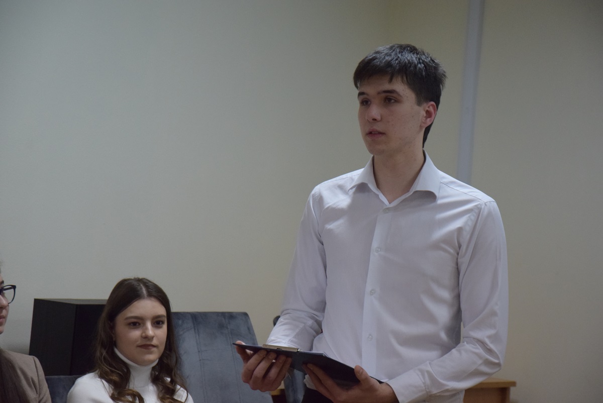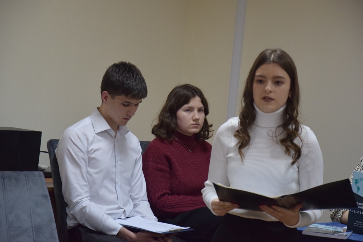 A szavalatok után Bányász Natália, a Filológia Tanszék Angol Tanszéki Csoportjának docense mutatta be Bányász Volodimir docens Оделетти для Химер című kötetét. A mű Gérard de Nerval három versciklusának verseit tárja az olvasó elé ukrán fordításban. Ezáltal jobban megérthetjük a francia romantikus költő verseit, melyek a képzelet és a valóság, valamint a kreativitás és az őrület határtereit kutatják. A kiadvány a XIX. század világirodalmának tanulmányozásakor is nagy segítségünkre lehet.
