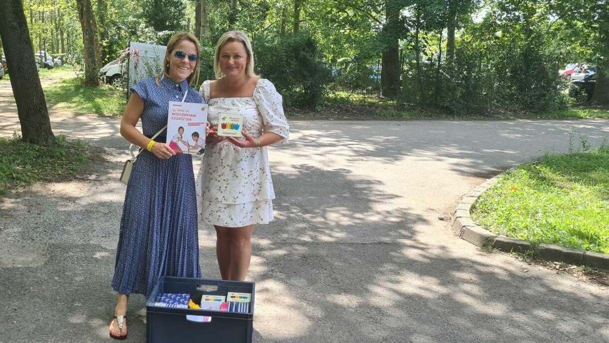 A találkozó során Balatoni Kata értékes tankönyvcsomagokat és pedagógiai fejlesztő anyagokat adott át a Tulipán Tanoda részére.