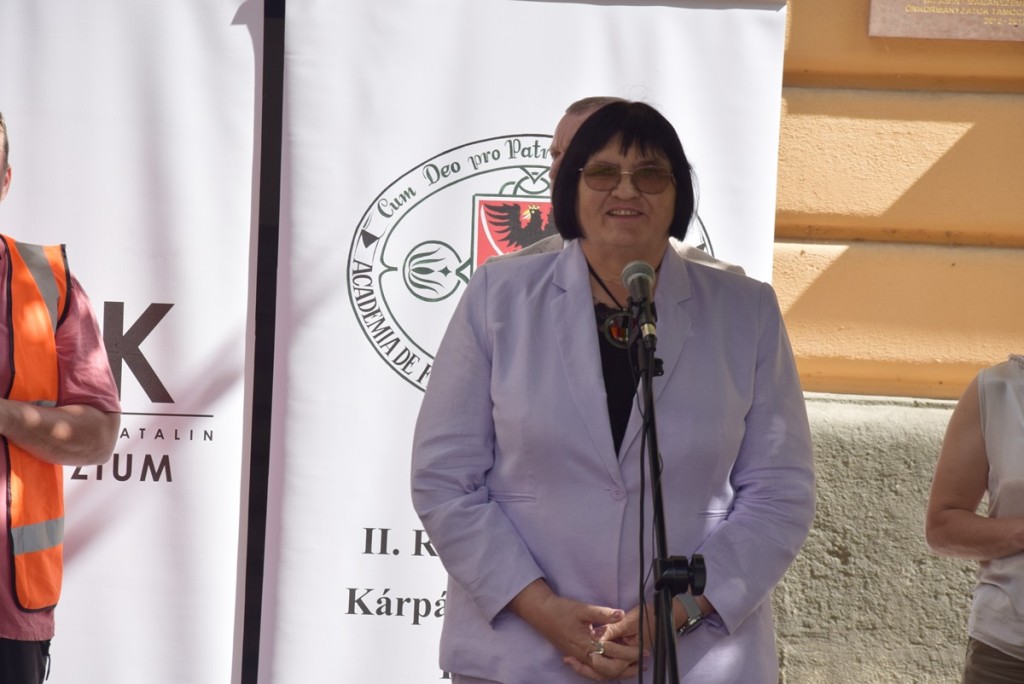 Orosz Ildikó, a II. Rákóczi Ferenc Kárpátaljai Magyar Főiskola elnöke egy kis versikével buzdította a gyerkőcöket a közlekedési szabályok megtanulására és betartására.