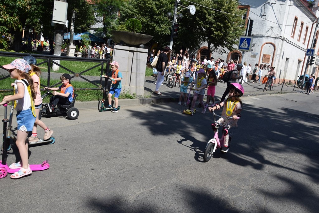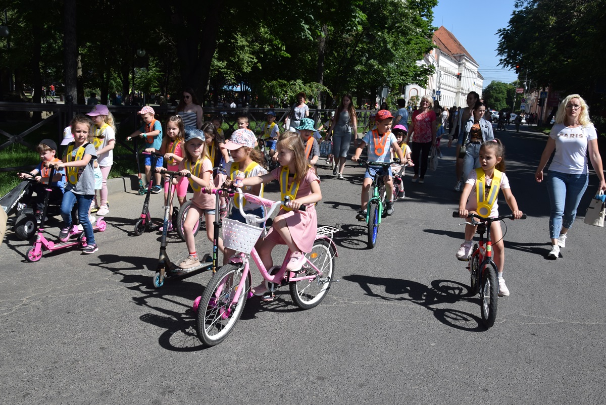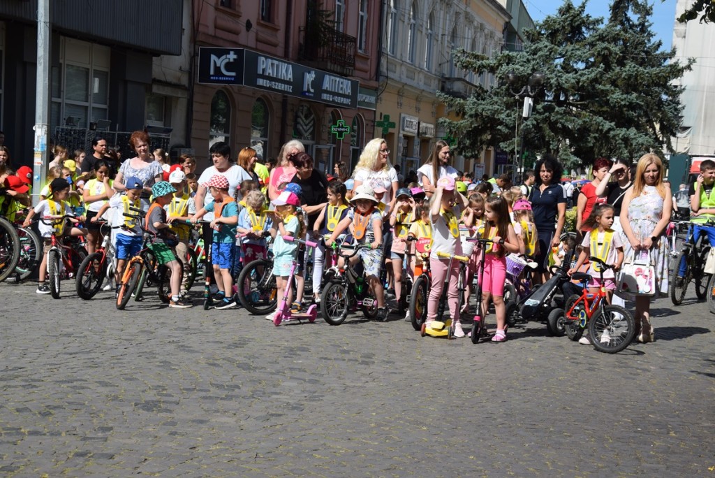 A köszöntőt követően jó hangulatú felvonuláson vehettünk részt, ahol óvodások, iskolások bicikliken, gokartokon vonulhattak végéig a Rákóczi-főiskolától indulva a Kossuth Lajos-líceumig. A hangulatról Bobály István zenepedagógus, a Beregszászi Kodály Zoltán Művészeti Iskola igazgatója gondoskodott. A Kossuth Lajos-líceumban pedig egy igazi akadálypálya várta a kicsiket, emellett beülhettek a rendőrautóba, és a tűzoltókocsi felszereléseivel is megismerkedhettek.