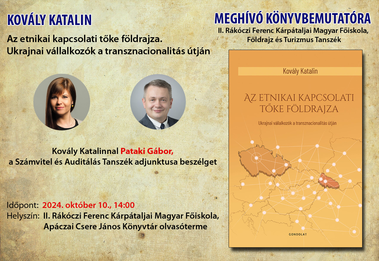 Az eseményen az alábbi monogfária kerül bemutatásra: „Az etnikai kapcsolati tőke földrajza. Ukrajnai vállalkozók a transznacionalitás útján”.