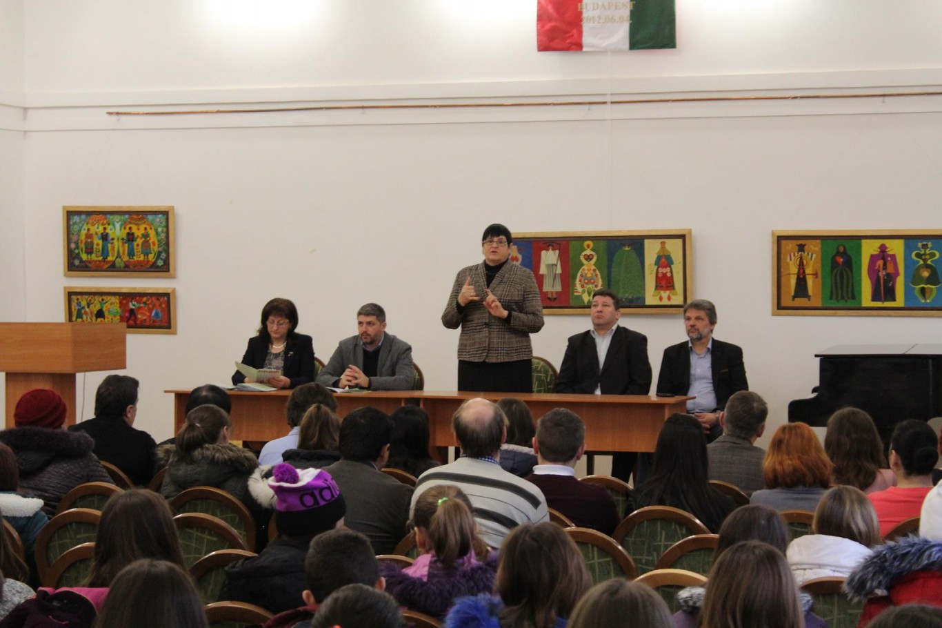Dr. Orosz Ildikó felhívta a diákok figyelmét arra, hogy ezentúl minden nappali tagozatos hallgató ösztöndíjban részesül, majd bemutatta a főiskola vezetőségét és a tanszékek vezetőit.