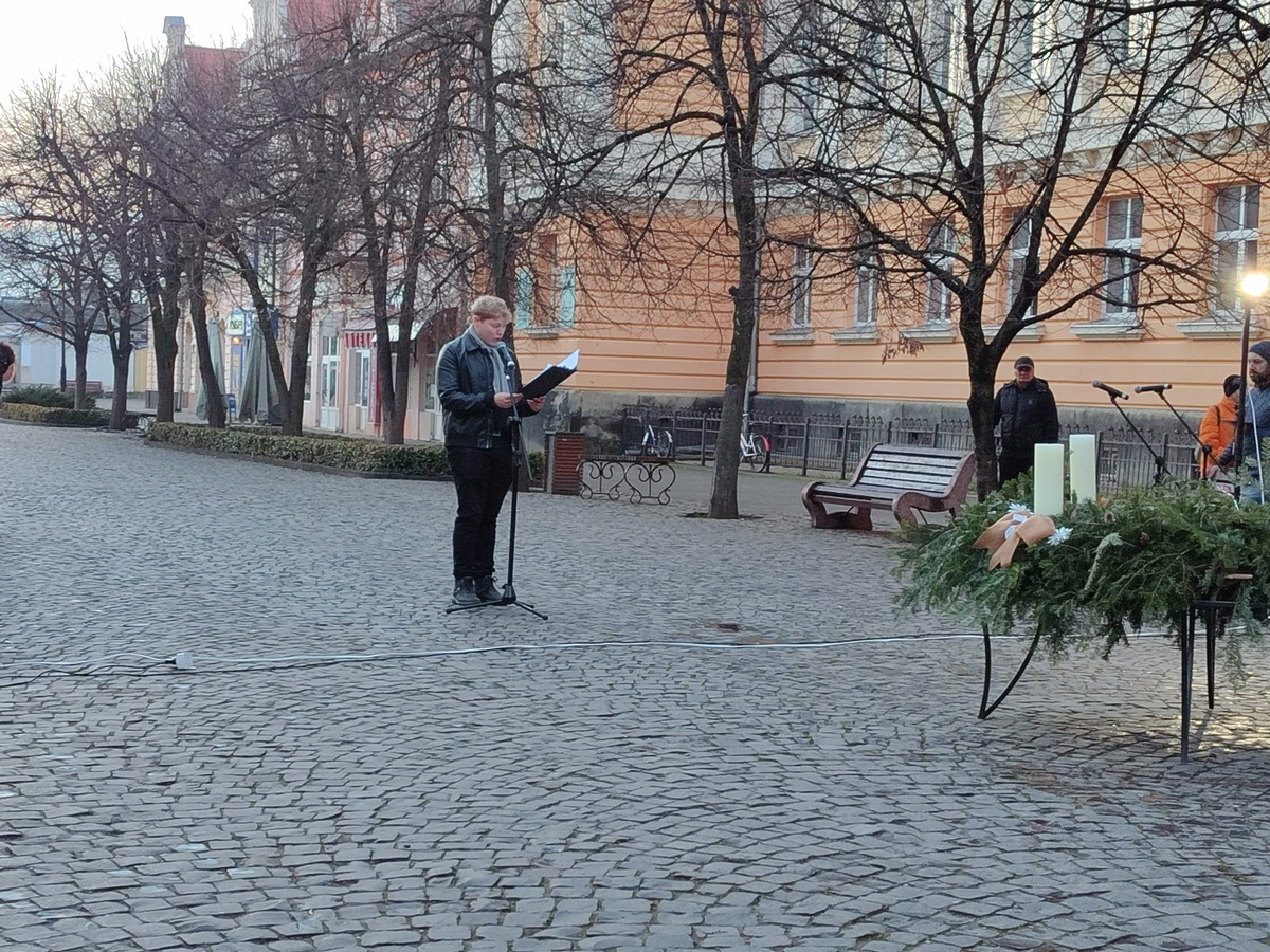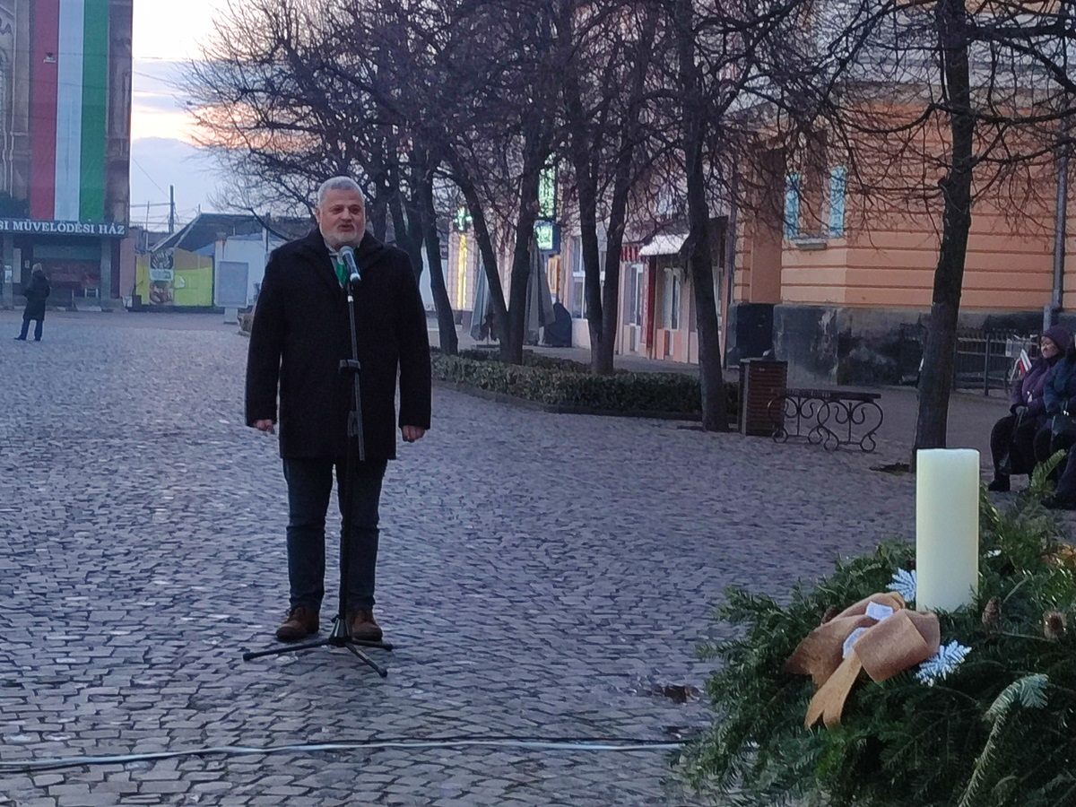 Meggyújtotta advent harmadik gyertyáját a görögkatolikus egyház, a Kárpátaljai Magyar Kulturális Szövetség és a Kárpátaljai Magyar Cserkészszövetség Beregszász központi koszorúján december 15-én.