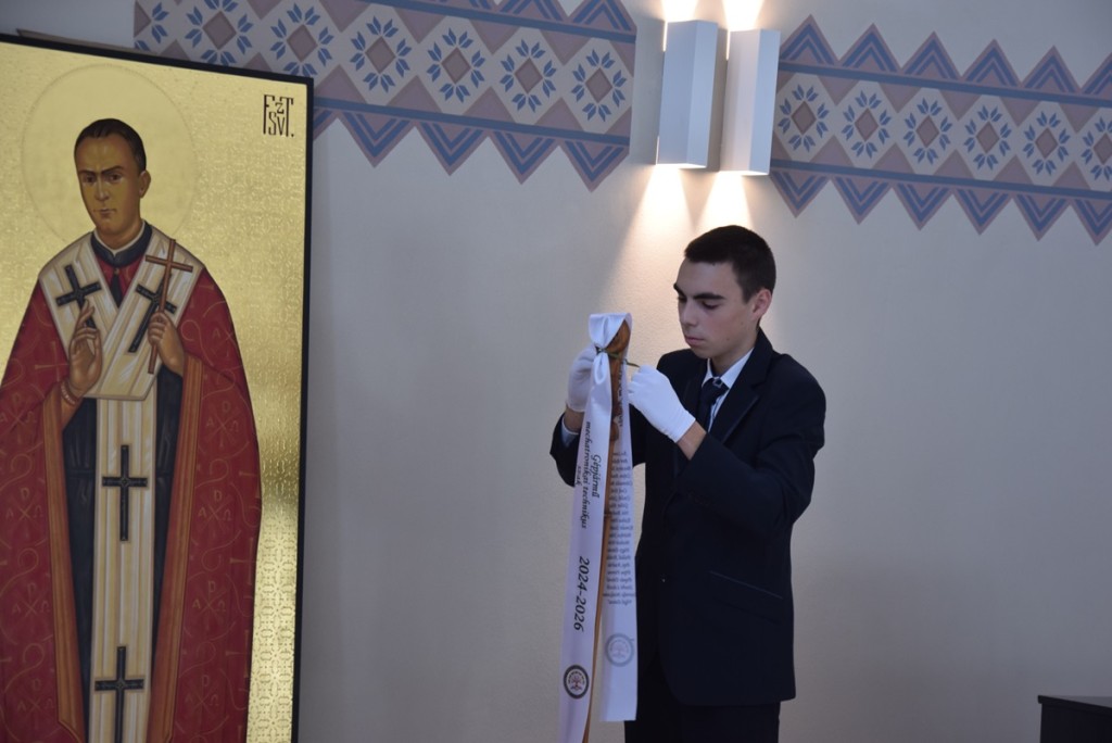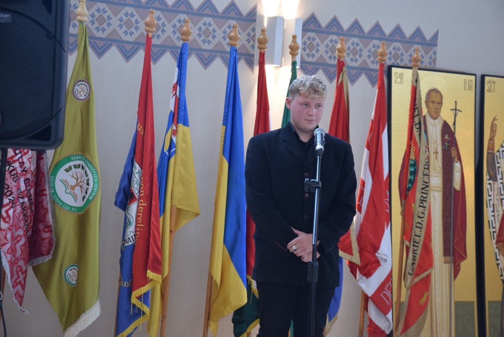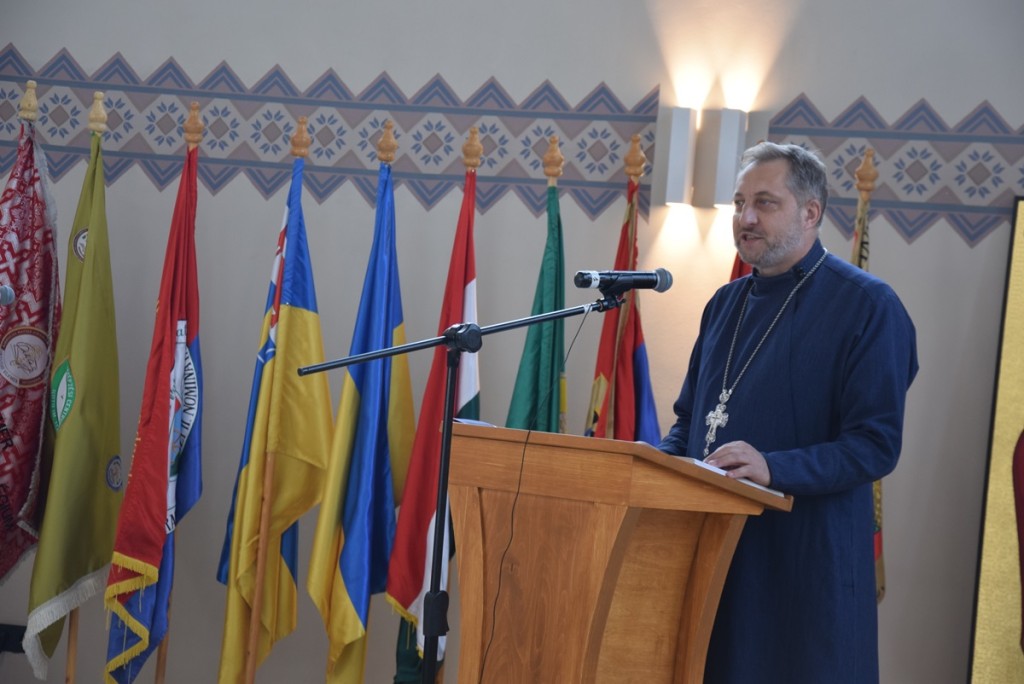 Az esemény Kárpátalja történelmi zászlóinak felvonultatásával kezdődött, melyeket népi viseletbe öltözött hallgatók vittek be. Ezt követően Marosi István görögkatolikus parókus, az Ortutay Elemér Görögkatolikus Szakkollégium vezetője köszöntötte a résztvevőket.