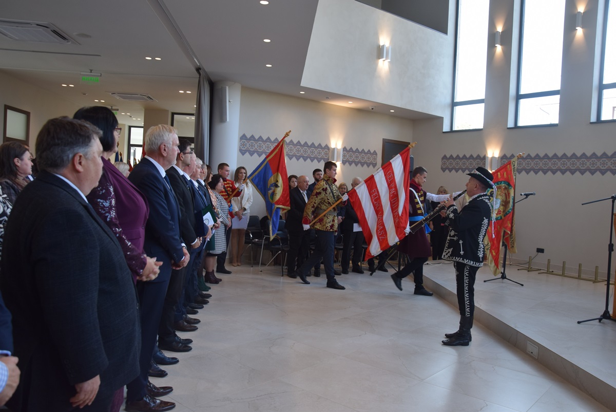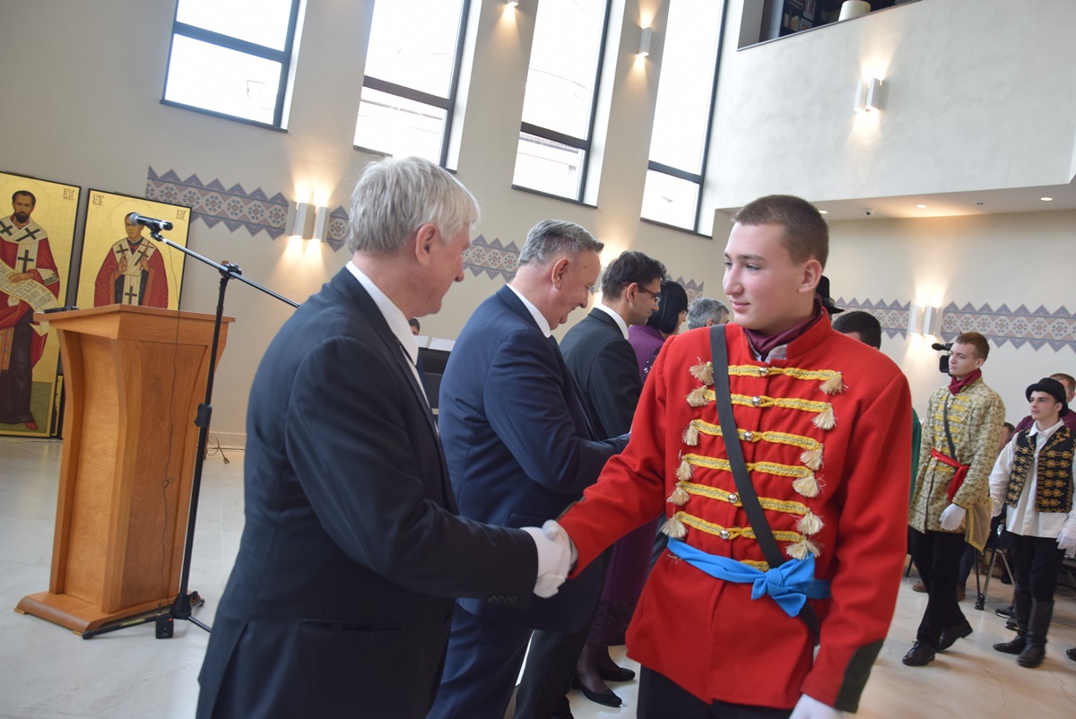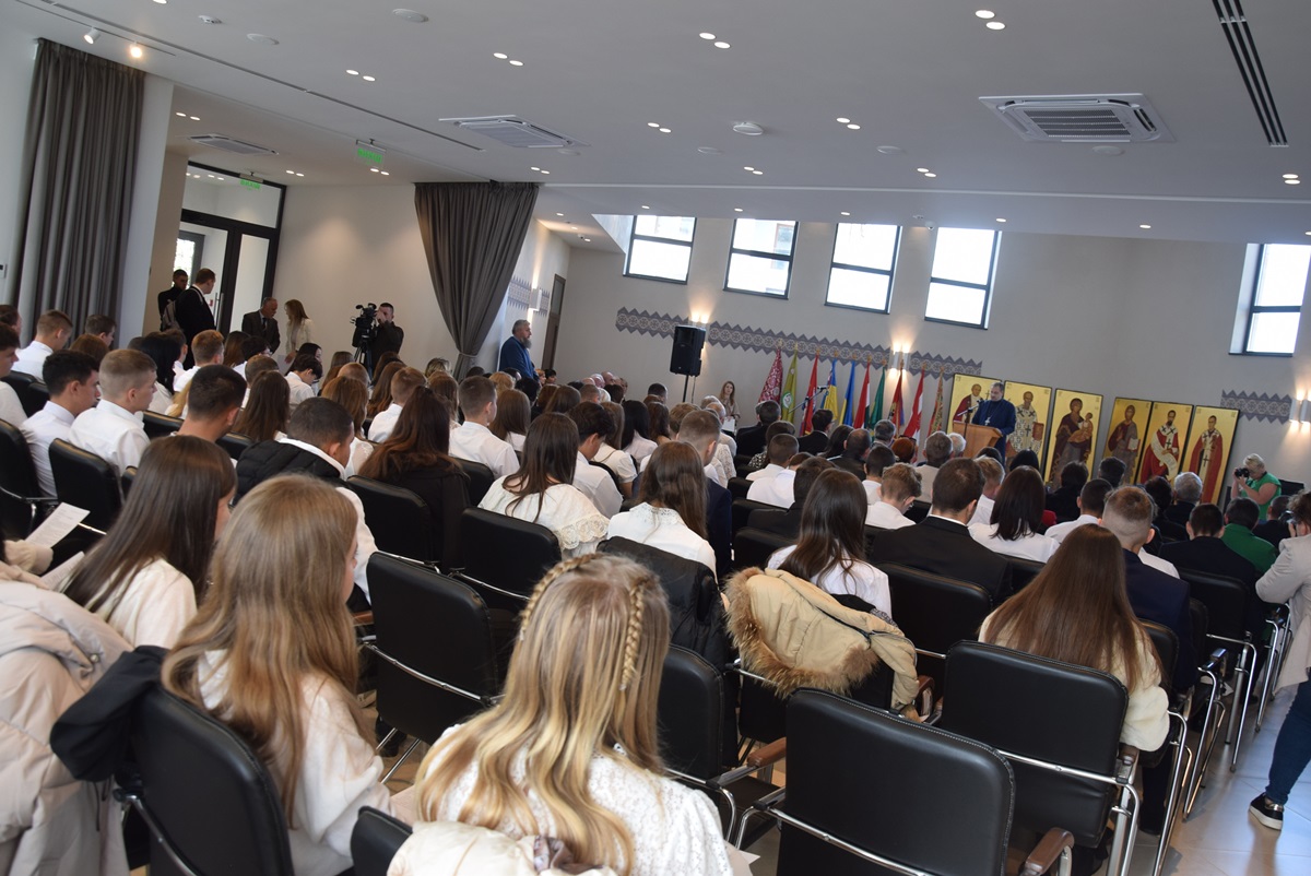 Az esemény Kárpátalja történelmi zászlóinak felvonultatásával kezdődött, melyeket népi viseletbe öltözött hallgatók vittek be. Ezt követően Marosi István görögkatolikus parókus, az Ortutay Elemér Görögkatolikus Szakkollégium vezetője köszöntötte a résztvevőket.
