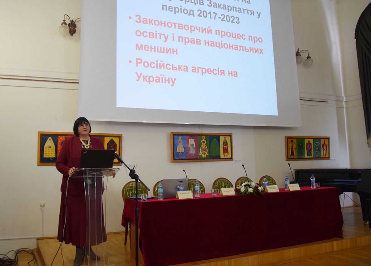 Elsőként Puskarjova Tamara, az Ukrajna Nemzeti Pedagógiai Tudományos Akadémiája Oktatási Anyagok Korszerűsítésével Foglalkozó Intézetének vezetője Európai iskolamodell a magyar tannyelvű iskolában című előadását mutatta be.
