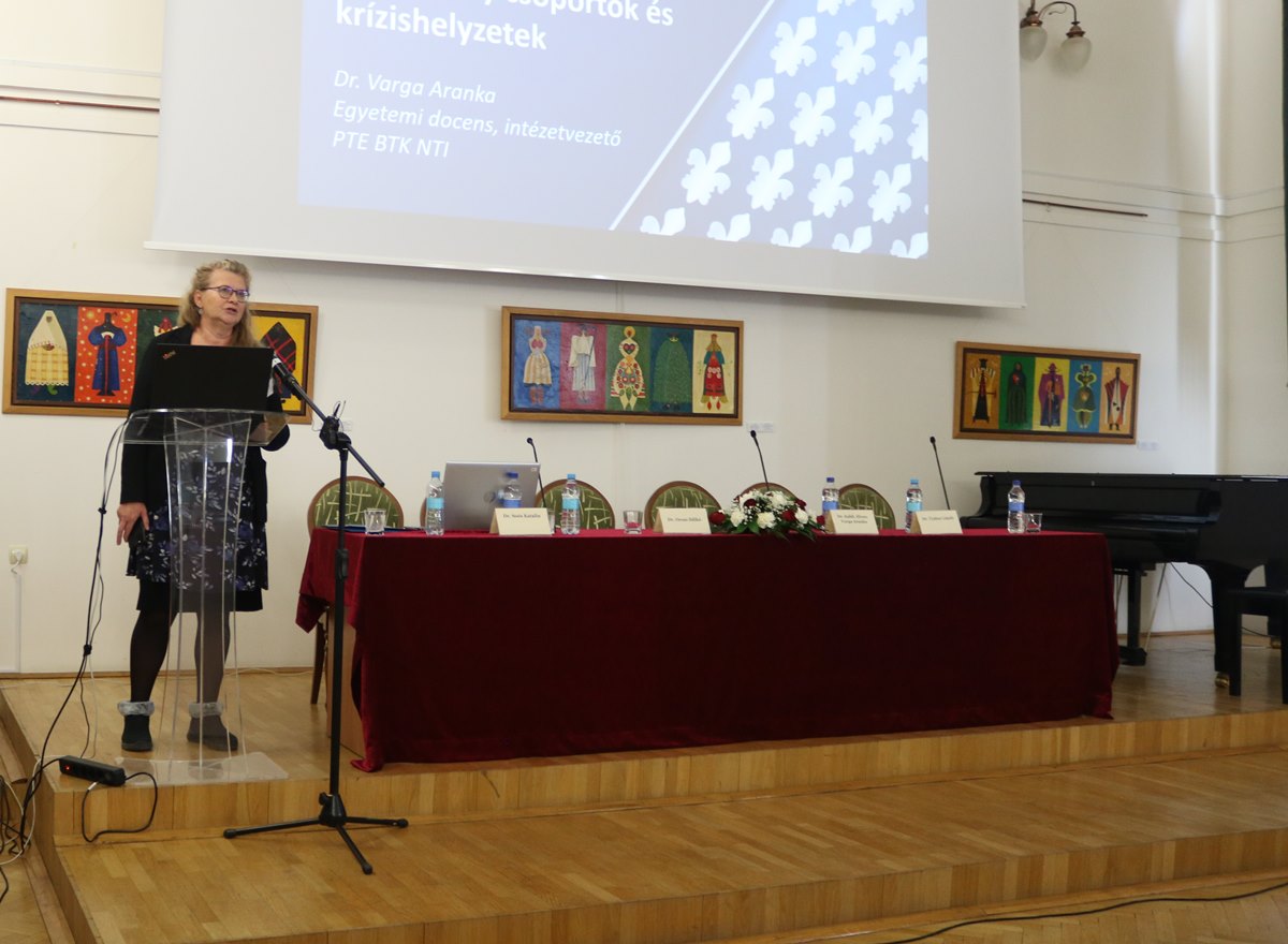 Majd Híves-Varga Aranka, a Pécsi Tudományegyetem Neveléstudományi Intézetének vezetője a roma tanulók megküzdési lehetőségeit vázolta a jelenlévőknek.