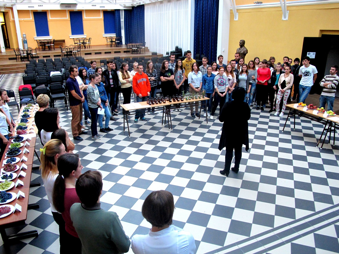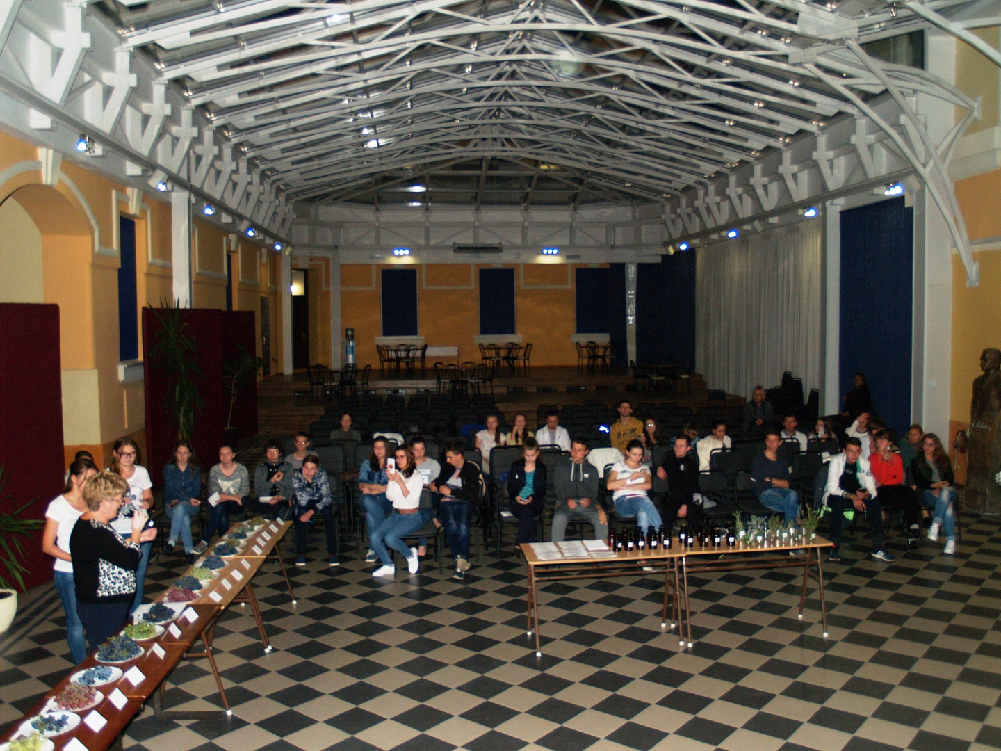 Napjainkban a génmódosított növények és a túlméretezett vegyszerhasználat alternatívájaként sok termelő a régi, sokkal ellenállóbb tájfajták termesztéséhez tér vissza, így ezek a lassan feledésbe merült és majdnem kipusztult kultúrák újból reneszánszukat élik. A termelők egyre gyakrabban nyúlnak vissza az intenzíven termő, viszont igen érzékeny változatok termesztése helyett a kórokozókkal és a kártevőkkel szemben rezisztensebb ősi fajtákhoz. Szerencsére vidékünkön sokfelé megőrizték a helyi klimatikus és talajtani viszonyokhoz remekül alkalmazkodó fajtákat, melyek az újratelepítések kiindulópontját képezhetik. E tájfajták jelentősége napjainkban egyre inkább felértékelődik, így fontos, hogy ezen értékeinket ismerjük és ápoljuk. A résztvevők Jakab Eleonóra és Pólin Irén, a Biológia és Kémia Tanszék oktatóinak tolmácsolásában számos hasznos ismerethez juthattak a Kárpátalján jelenleg termesztett gyakoribb szőlő és almafajtákról, valamint fűszer és gyógynövényeinkről. Az interaktív bemutató keretében alkalom nyílt a felvonultatott szőlő és almafajták kóstolására, a bátrabbak ki is próbálhatták tudásukat azok felismerésében. A programsorozat szabadtéri éjszakai fénycsapdás rovargyűjtéssel zárult, melyet Molnár Attila főiskolai biológus hallgató, a Kölcsey Ferenc Szakkollégium Hallgatói Önkormányzatának elnöke reprezentált.
