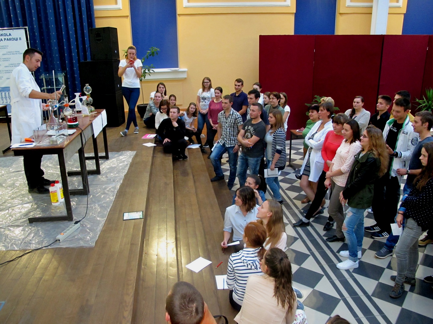A természettudományok iránt érdeklődő egybegyűlteket Kohut Erzsébet, a Biológia és Kémia Tanszék oktatója köszöntötte. Beszédében hangsúlyozta a tudományok iránti nyitott és érdeklődő életszemlélet, valamint a mindezekből nyerhető, a mindennapi életünket átszövő gyakorlati ismeretek fontosságát. A megnyitót követően a résztvevők látványos és érdekes kémiai kísérleteket tekinthettek meg Molnár Ferenc, a Biológia és Kémia Tanszék laboránsának interaktív bemutatója során. A kémiai bemutatót követően éjszakai állathang-felismerés következett. A Főiskola auláját megtöltő állathangok azonosításában és fajhoz rendelésében jeleskedők apró ajándékokért versenghettek.