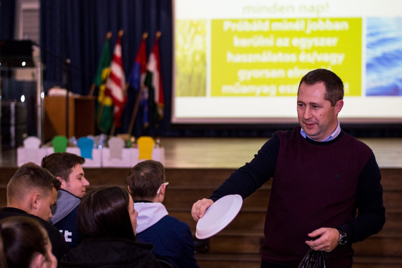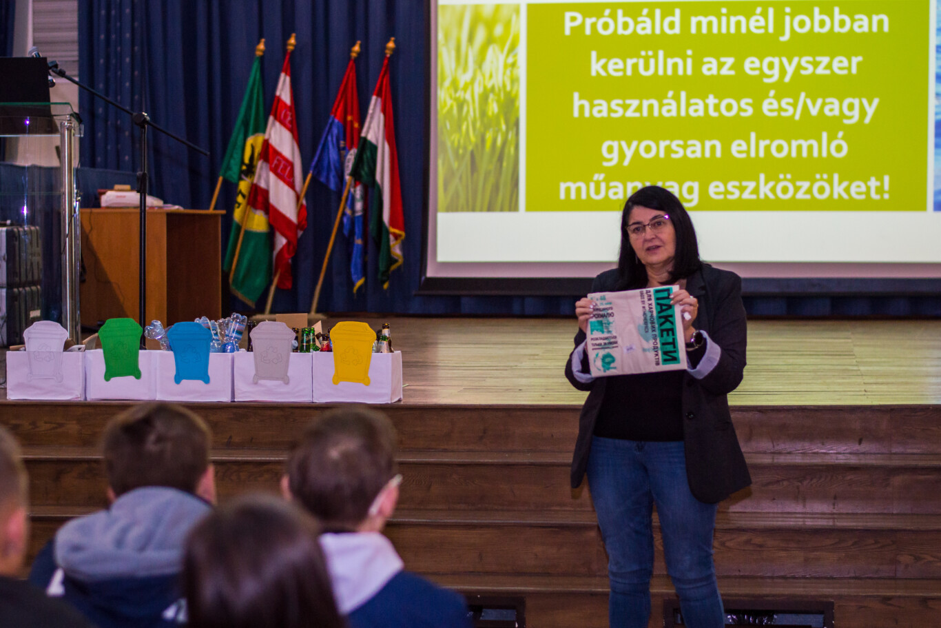 A bemutatókat Hadnagy István kezdte, aki a szelektív hulladékgyűjtésről osztott meg érdekes információkat, és a műanyagok típusait mutatta be. A nézők számára világossá vált, hogy még az is nagyon kis lépés a környezettudatosság irányába, ha a műanyag hulladékot külön gyűjtjük, ugyanis a különböző polimer típusok különböző feldolgozást igényelnek. Ezután Szaniszló Szebasztián kémia szakos hallhatók segítségével mutatott be érdekes és látványos kísérleteket különböző polimerekkel, így megtudhattuk, hogy milyen sokoldalúan használhatóak azok. Az est végén Molnár Ferenc beszélt a talaj lebontó szerepéről, és ennek vizsgálata érdekében a résztvevők el is indítottak egy kísérletet, melynek első lépése az volt, hogy teafiltereket ástak el különböző talajtípusokba. A tervek szerint ezeket a Föld Napján (április 22-én) fogják kiásni, hogy megfigyelhessék majd a változásokat. A tea mellé elástak egy-egy kukoricakeményítőből készült tasakot is, melyet Kohut Erzsébet mutatott be a résztvevőknek. Ezek a tasakok elméletileg komposztálhatóak, így várhatóan áprilisra azok nagy része le fog bomlani majd.