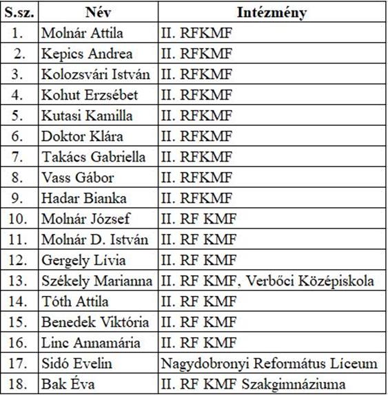 A foglalkozásokra az előző évekhez hasonlóan idén is névre szóló meghívót kaptak a Kárpátaljai Magyar Pedagógusszövetség által szervezett Szent Györgyi Albert kémia- (8. osztály), Margittai Antal biológia (7-8. osztály) és természetrajz- földrajz (7-8. osztály) versenyek 1-10. helyezettjei, akik már eddig is bizonyították a kémia, biológia és földrajz iránti szeretetüket. A meghívottakból összesen 15 tanuló élt ezzel a lehetőséggel, akik Kárpátalja alábbi oktatási intézményeit képviselték: