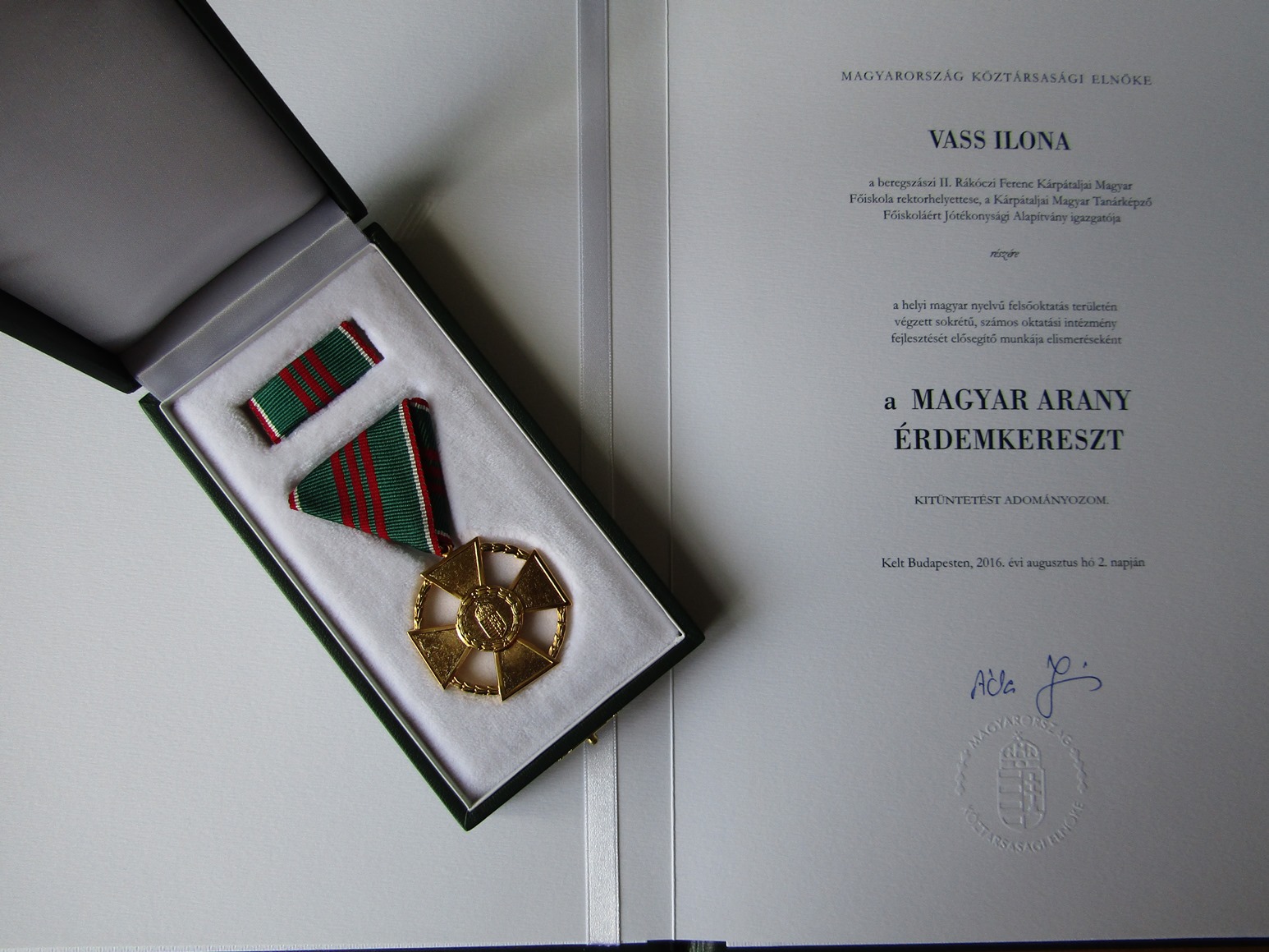 A Magyar Érdemkereszt legfelső fokozatával tüntette ki Áder János, Magyarország köztársasági elnöke Vass Ilonát, a II. Rákóczi Ferenc Kárpátaljai Magyar Főiskola rektorhelyettesét, aki egyben a Kárpátaljai Magyar Tanárképző Főiskoláért Jótékonysági Alapítvány ügyvezetője.