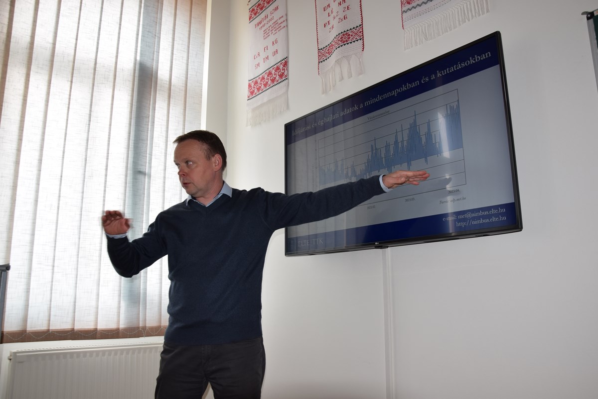 A rendezvény kezdetén az előadót Molnár József, a Földtudományi és Turizmus Tanszék vezetője mutatta be. Majd Dr. Mészáros Róbert Időjárási és éghajlati adatok a mindennapokban és a kutatásokban címmel tartott előadást.
