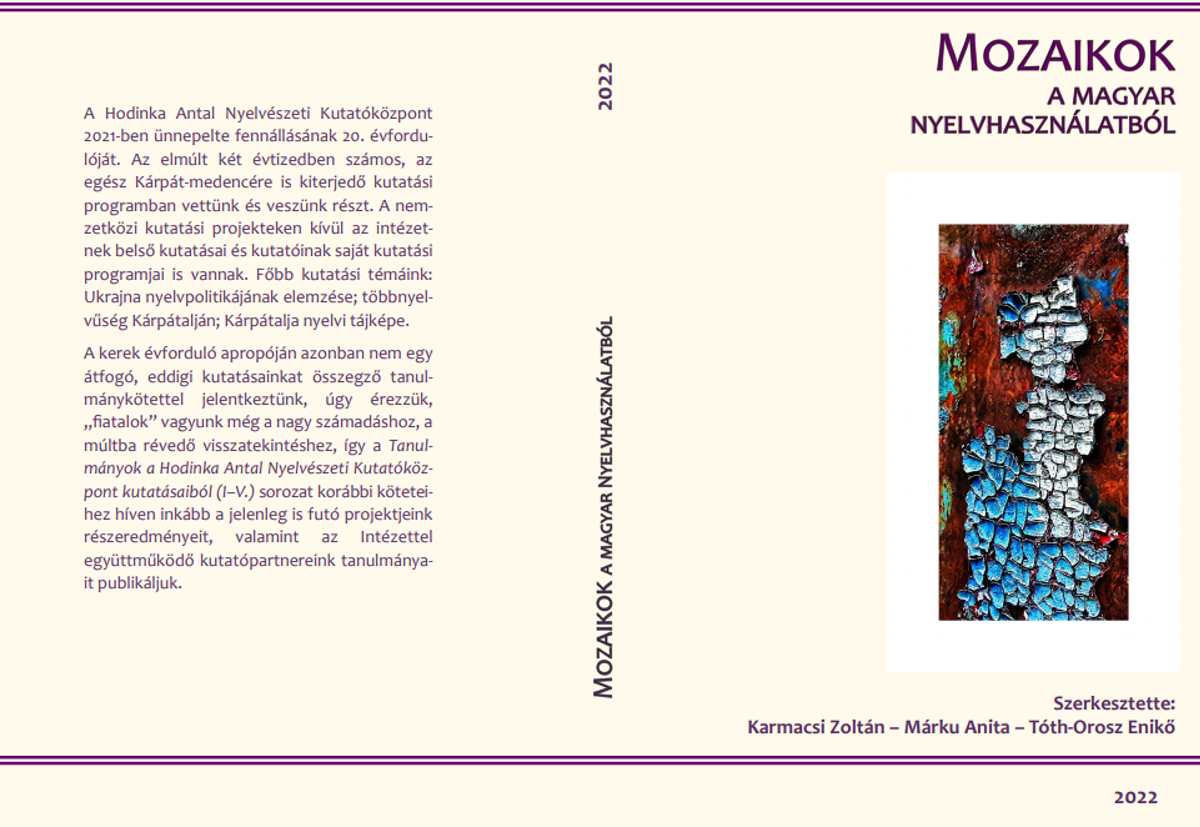 Mozaikok a magyar nyelvhasználatból címmel jelent meg a Hodinka Antal Nyelvészeti Kutatóközpont legújabb lektorált tanulmánykötete a Termini Egyesület gondozásában.