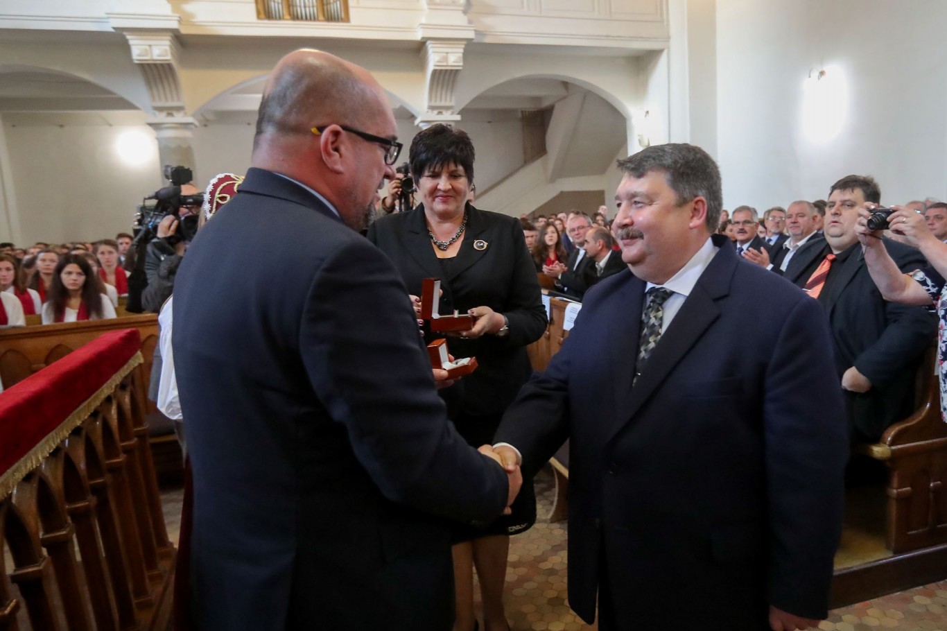 Balog Zoltán, az emberi erőforrások minisztere a tanévnyitó ünnepségen elmondta, hogy a kárpátaljai magyarok a szülőföldjükön akarnak boldogulni, Magyarországnak pedig alkotmányos kötelessége ebben segíteni őket. A miniszter arra is rávilágított, hogy Kárpátalján jelenleg 71 magyar tannyelvű, 31 magyar–ukrán tannyelvű és egy magyar–orosz iskola működik. Ebben a tanévben Kárpátalján 16160 gyermek tanul magyar tannyelvű osztályokban, őket 2196 magyar pedagógus oktatja. A magyar állam számára természetes a Magyarországon élő ukrán nemzetiségű közösség segítése, s erre a célra mintegy egymilliárd forintot különítettek el. Fontosnak tartja, hogy mindenki a szülőföldjén boldoguljon. Balog Zoltán kiemelte az új oktatási törvény 7. cikkelyét, amely szembemegy mindazzal, amire a szabaddá lett ukrán és a magyar nemzet szerződött egymással, valamint egy sor olyan nemzetközi egyezménnyel, amelyet az európai nemzetek közössége felé indulva Ukrajna elvállalt. A törvény elfogadásával Ukrajna megsérti nyugati szomszédjait, s elfelejti, hogy az ukrán nemzet is volt elnyomott helyzetben – hangsúlyozta a miniszter. Balog Zoltán sajnálattal vette tudomásul, hogy az ünnepségre nem jött el Lilija Hrinevics ukrán oktatásügyi miniszter, s nem tud tárgyalni vele az oktatási törvényről. Fontos, hogy a Kárpátaljai Megyei Tanács kiállt a nemzeti kisebbségek jogai mellett, mert az itt élő képviselők jól tudják, hogy az anyanyelvi oktatás nem elvesz, hanem hozzátesz az életükhöz. A miniszter zsákutcaként tartja számon az új oktatási törvényt, de azt is megjegyezte, hogy Magyarország kézfogással fogja várni Ukrajnát a zsákutca kijáratánál, hogy együtt mehessenek tovább azon az európai úton, amelyre a történelmi sorsközösség predesztinálta őket. Magyarország és az érintett országok egyesült erővel minden törvényes eszközzel fel fognak lépni a jogfosztás ellen a nemzetközi közösség előtt. – Készen állunk küzdeni, készen állunk tárgyalni, készen állunk a nemzetiségi oktatás érdekében megegyezni. A magyar kormány úgy döntött, ennek kifejezésére több, mint egymilliárd forinttal támogatja egy sportcsarnok és egy uszoda felépítését a főiskola mellett – hangsúlyozta Balog Zoltán. A miniszter a kárpátaljai magyarságot biztatva beszédét Rákóczi zászlajának jelmondatával zárta: „Isten a jó ügyet nem hagyja el”.